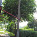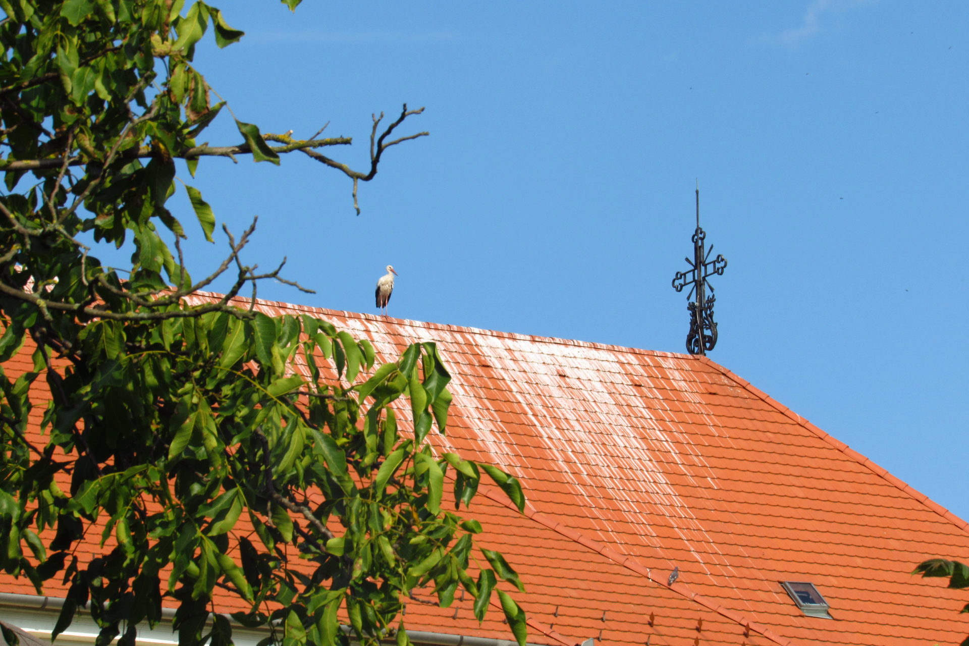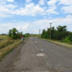 Innen aztán elindultunk Kömlő felé. Utunk a templom felé vitt vissza. Ahol én megálltam még lefotózni az előző nap emlegetett iskolát. Pár lépéssel később megállt mellettem egy biciklis férfi, aki kérdezte, hogy kérdezhet-e valamit, mert hogy erre felé nem sok az idegen, hát még hátizsákkal. Ebből a kérdésből egy kb. fél órás beszélgetés lett. Gergő közben már előre ment, úgy hogy csak reméltem, hogy előbb-utóbb észreveszi, hogy nem megyek utána. Persze így is lett, láttam pár perc múlva, hogy visszafordult a kanyarban, és látja, hogy beszélgetek, de ő nem jött már vissza. Kiderült, hogy ez a férfi Budapest mellől költözött ide a válása után. Kertész volt, és ezen kívül műszaki dolgok érdekelték, bicikliszerelés, lakatoskodás. Van itt egy háza, kis kerttel, önellátásban van plusz a nyugdíj. Imádja a természetet. Ismer minden madarat, gyógynövényt. Szenvedélye a történelem, és nagyon sokat olvas. Régen a várak izgatták nagyon, ami mára is megmaradt, de ma már nem járja az országot, mint rég ilyen szemmel. Sokat beszélgettünk a magyar nyelv megőrzésének fontosságáról, meg mindenféléről. Mondtam neki, hogy írnia kéne, amire azt mondta, milyen jó ötlet, ez még nem is jutott eszébe. Nagyon izgalmas a gondolkodása, szerintem tényleg nagyon jó lenne, ha valahogy át is tudná adni. Készít szörpöket, lekvárokat, gyűjt gyógynövényeket. Az elkészítésükhöz önálló módszert dolgozott ki, és az eszközöket is maga gyártja hozzá. Magyarázott valami új passzírozó rendszert, amit ő fejlesztett ki, de be kell valljam, nem teljesen értettem. Nagyon érdekelte, hogy mi mit csinálunk. Erről is hosszan beszélgettünk. Majd elindultam Gergő után – megint egy fantasztikus ember megismerésével gazdagabban.