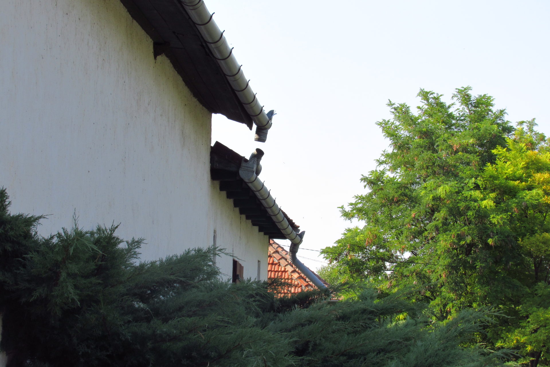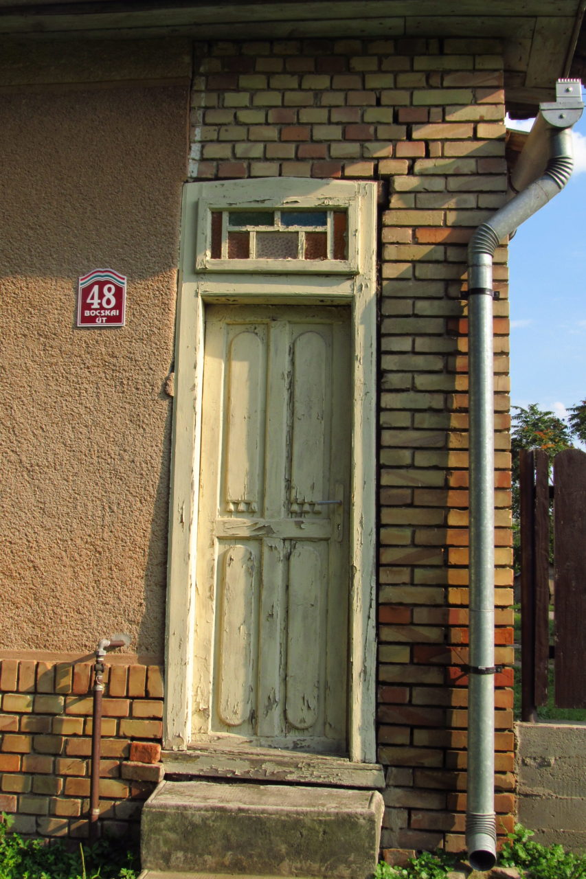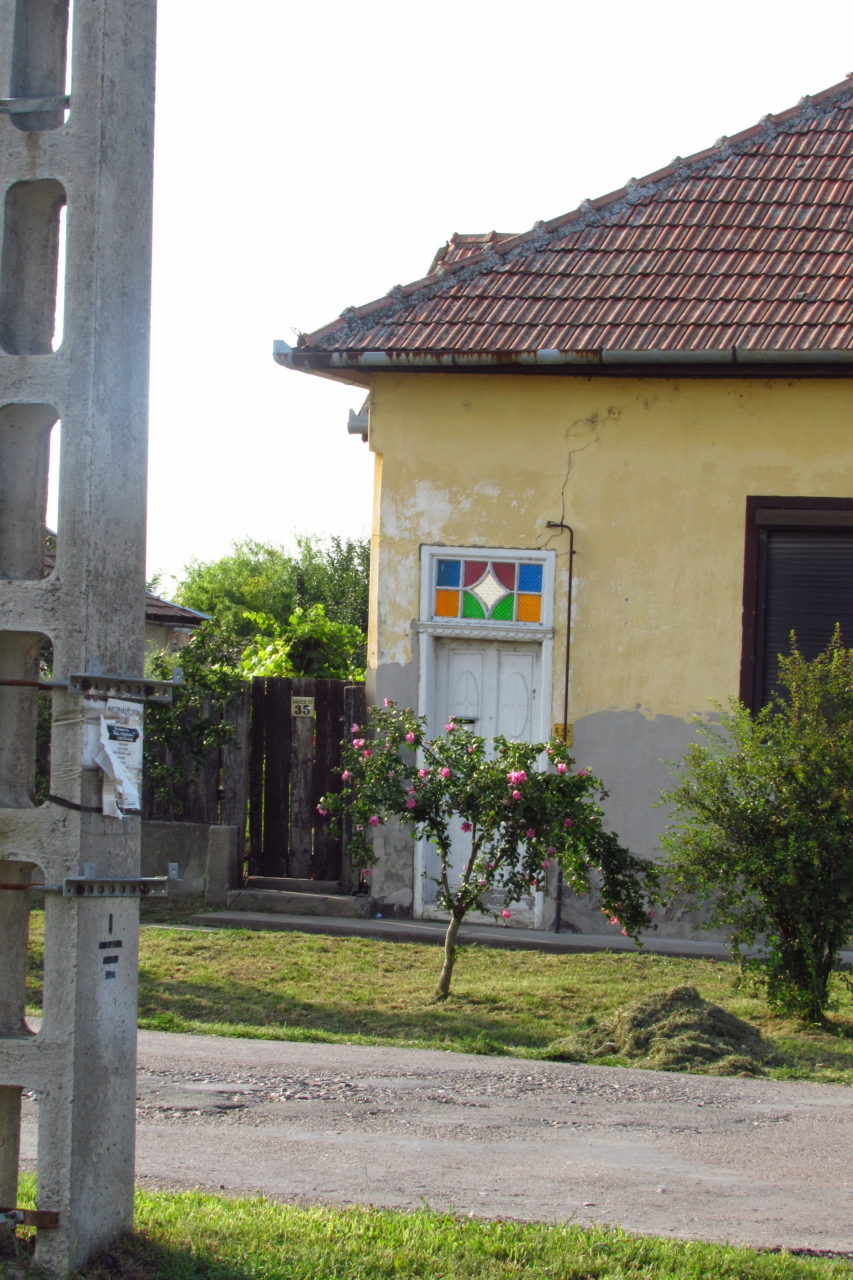 Szóval beértünk Kömlőre. Ami engem itt azonnal elvarázsolt, az a házak esőcsatorna rendszere és vízlevezetési módjai, a bádogos munkák. Ja és az ajtók és elő-tornácok. Fotóztam is rengeteget. Közben eszembe jutott, hogy biztos másnak nem ez tűnne fel, és hogy milyen érdekes szinte mindenhol van valami, ami ilyen dolog, ami megragad. Valószínűleg másnak más lenne ez, sőt lehet, hogy ha én máskor jönnék máshogy, nekem is más lenne.