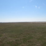 Egyébként a táj – az úton kívül – gyönyörű. Érdekes élmény, hogy néhány napja ugyanilyen földön haladtunk, és az eső miatt tiszta láp volt az egész, és mindez oda. Most beton kemény és repedezett a talaj, tele buckákkal. Nagyon sokféle növény él itt. Csodaszépek a színek. Reggel még egy, azaz egy darab felhő sem volt a csodálatosan kék égen, de ahogy haladtunk előre, egyre több fantasztikus alakú, formájú bárányfelhő jelent meg.