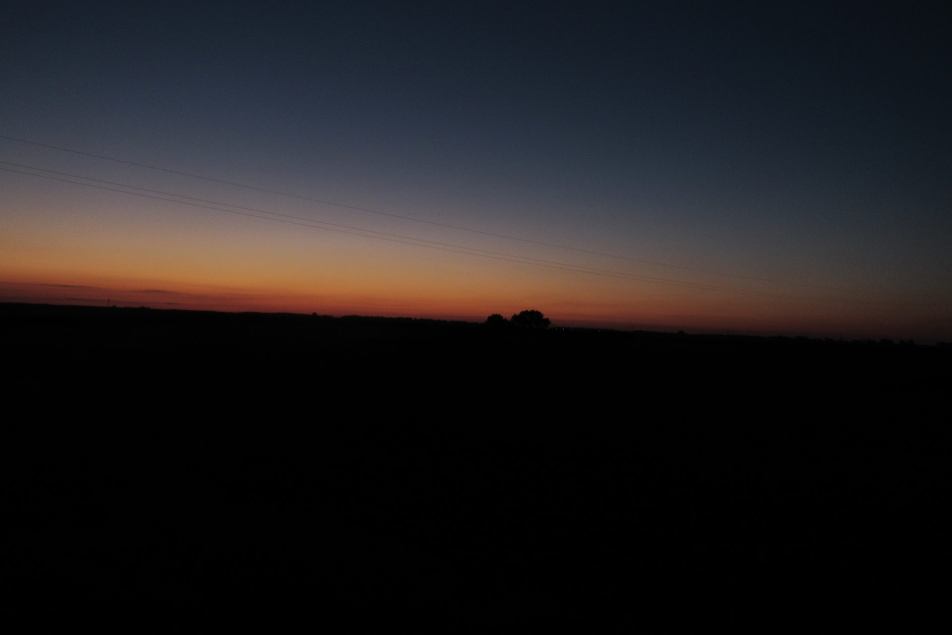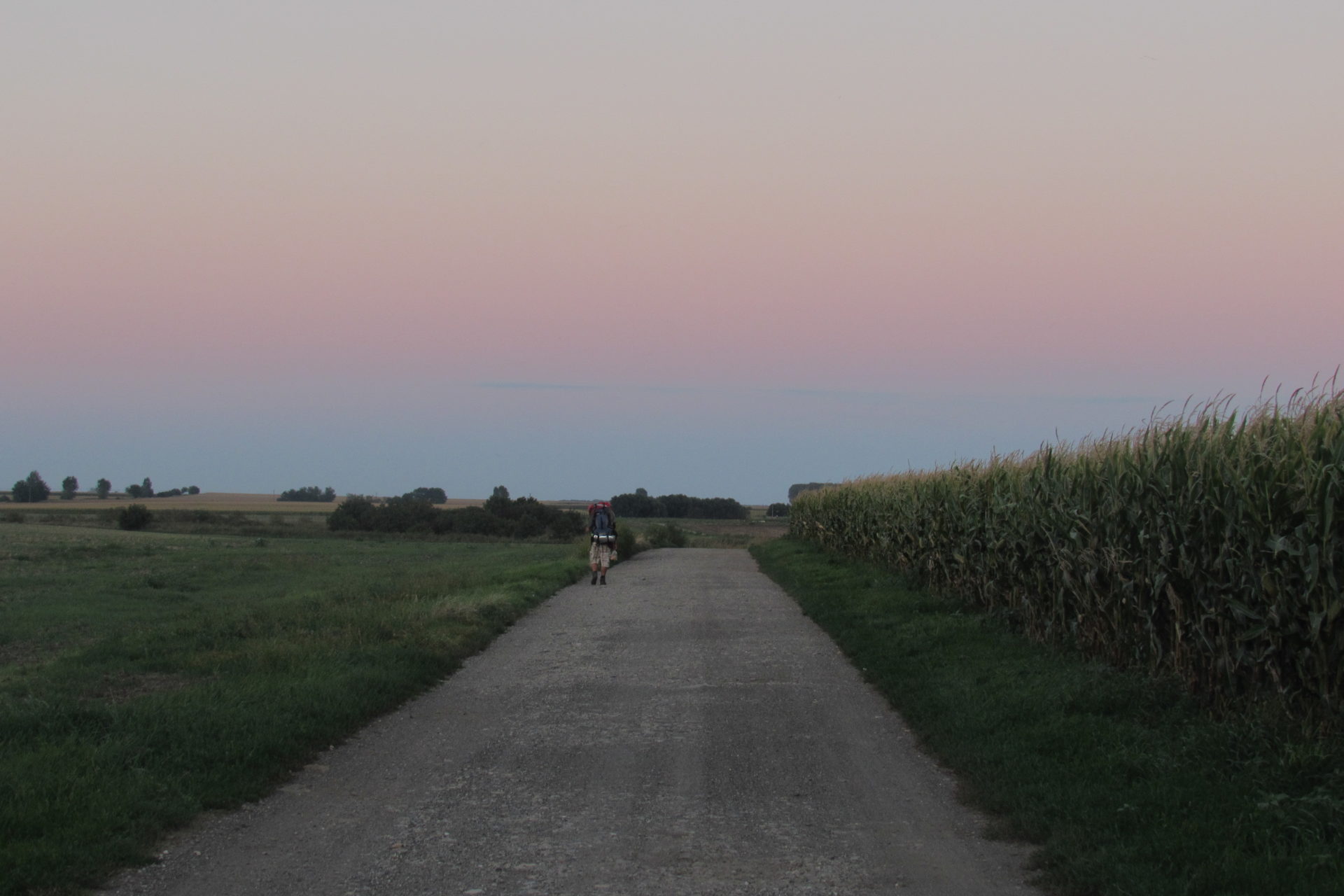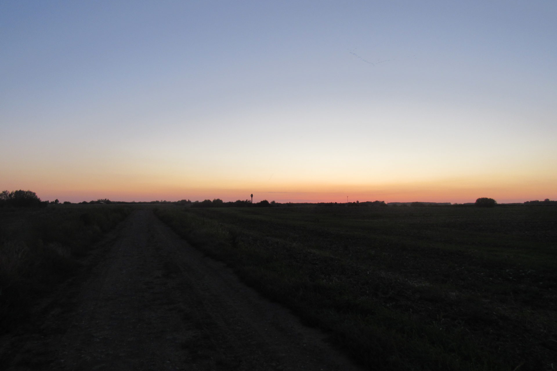 A vacsi után továbbindultunk a megadott hely felé, vagyis a Kráter tóhoz. Egy nagyon szép és hangulatos út vezet ki a faluból. Igaz már jócskán esteledett, és egyre kevésbé láttunk, de a fények valami csodálatosak voltak. Egyszercsak megállt mellettünk egy férfi kismotorral. Kedvesen bemutatkozott, mondta, hogy ő az önkormányzat mezőőre. Érdeklődött hova honnan. Elmondtuk. Javasolta ő is ugyanazt a helyet alvásra, és hogy szedjünk kukoricát nyugodtan és süssük meg. Majd elbúcsúzott. Ahogy haladtunk, már láttuk a mezőn álló facsoportot, ami a kis tavat rejtette. Közben újra találkoztunk a mezőőrünkkel, aki megállt egy álló őrrel beszélgetni közben. Az álló őrazt jelenti, hogy kiköltözik valaki 3 hétre egy lakókocsiba és őrzi a földet. Vele is beszélgettünk kicsit. Mondta, hogy az ő álma az, hogy szerezzen egy lakóautót és bejárja Erdélyt, úgy hogy két-három vagy akár 6 hónapig sem kell mást csinálnia. Azt azért nehezen tudja elképzelni, hogy ennyire nomád körülmények között tegye mindezt, mint mi. Neki kell a kényelem. Miután ezt jól megbeszéltük, mondta, hogy vegyünk a hagymából, amit őriz. Vicces, hogy észre se vettem, hogy már jó ideje egy hagyma föld mellett haladunk. Valószínűleg azért, mert itt ez nem jutna eszembe. Mondta, hogy nem is nagyon szokás itt hagymát ültetni, de miután a krumpli viszont nagyon megy itt, és mindig kérdezték a hagymát is, ezért az önkormányzat belevágott a dologba. A baj csak az, hogy nagyon lopnák is. De ezért van itt ő! Mondtam nekik, hogy akkor most nehogy lelőjenek, ha szedünk belőle! Jót nevettünk még egyéb vicceken is, majd továbbindultunk, mert már valóban nagyon gyorsan sötétedik. Aztán végre elértük a kis erdőt. Ez maga a csoda ismét.