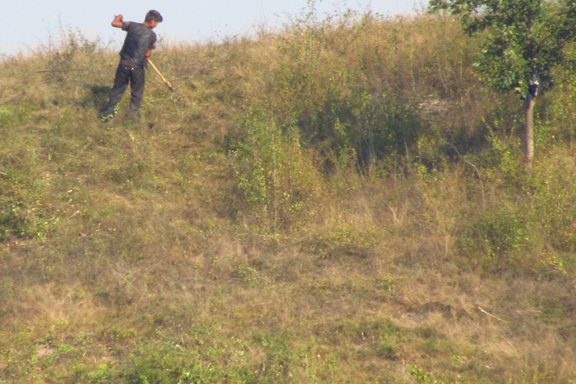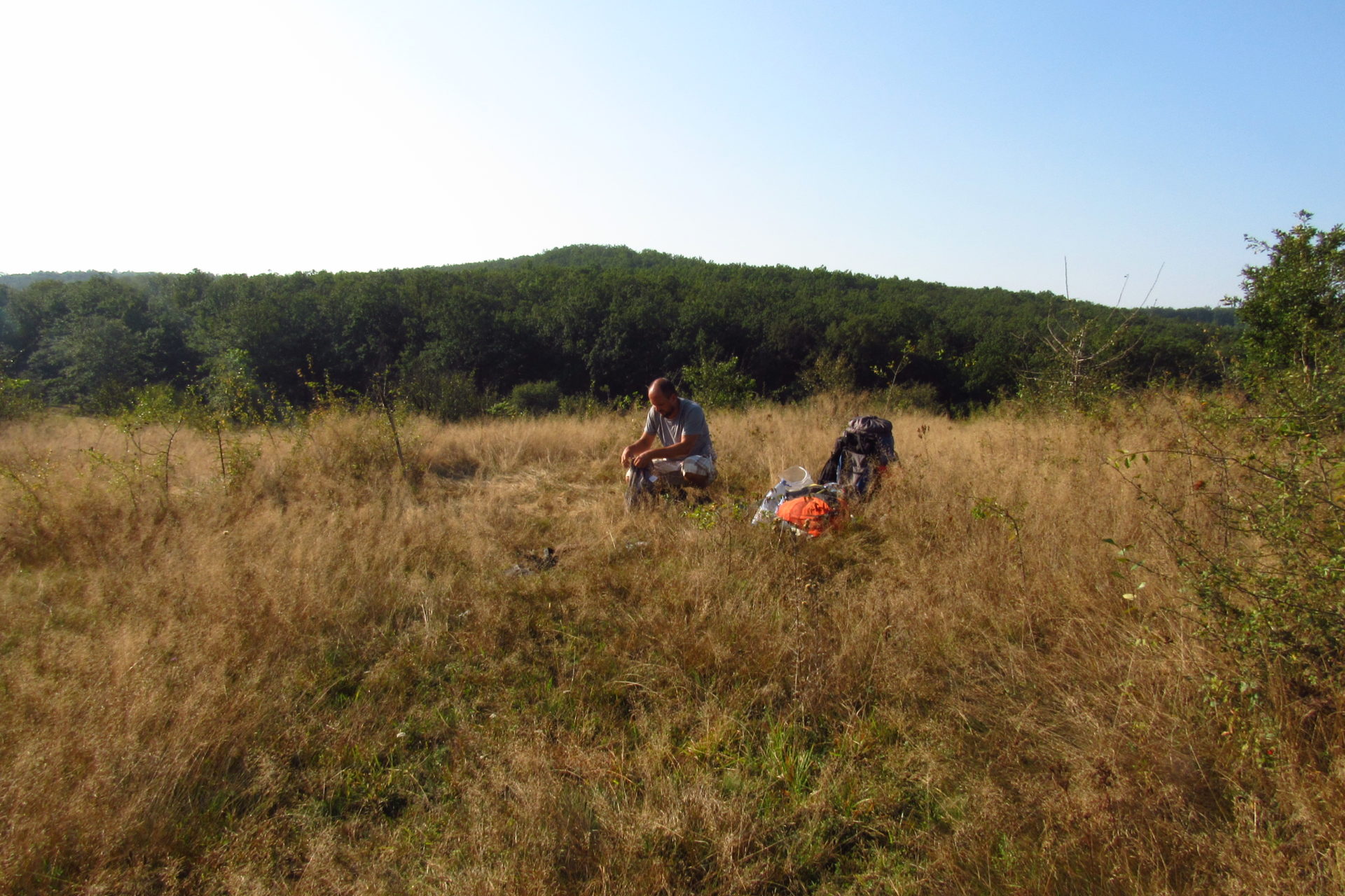 Miután abbahagytam az írást, és elkezdtünk pakolni, a szomszéd domb oldalában megjelentek a tegnapi cigányok. Azok, akikkel utoljára találkoztunk, és valljuk be, akik miatt intenzív tempóra kapcsolva, még távolabb akartunk kerülni innen. De ugye, jött a “kutya”. Azt hiszem, sok mindenért lehet hálás az ember, de én most ennek a kutyának voltam az, de nagyon. Ott álltam a dombon, és néztem ezeket az embereket, ahogy végzik mindennapos munkájukat. Átnéztek és intettek nekünk, és persze eszükbe sem jutott bántani minket. Szégyelltem, és nem is akármennyire magam. Ekkor már tudtam, és ezt jól meg is beszéltük Gergővel, hogy a kutya segítség volt nekünk, hogy ne menjünk tovább. Álljunk meg, és nézzünk szembe félelmeinkkel. Vagy felfoghatjuk úgy is – Gergő szerint -, hogy ez az erdő bölcsessége volt. Mindegy is. Csodálatos szimbólum! Út, cigányok, félelem, kutya, megállás, visszafordulás, domb szemben, szembenézés, szembesülés… Életem egyik meghatározó pontja ez, azt hiszem!