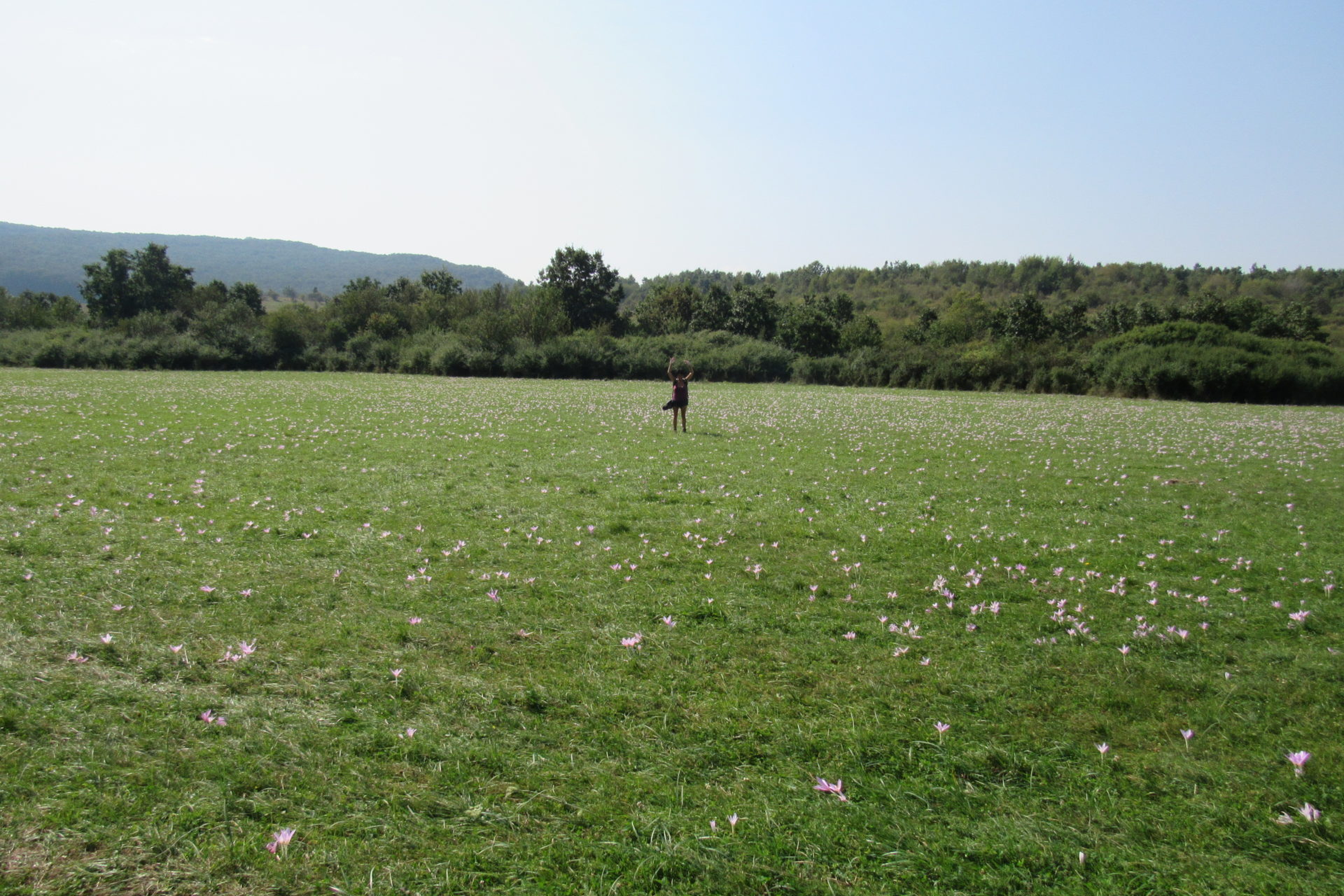 És ami ezután jött! Egy hatalmas rét, de tényleg hatalmas, tele gyönyörű lila virágokkal. Olyan kökörcsinhez hasonlókkal, amikről nem is lehet érteni, hogy ősszel virágoznak. De itt vannak és álomszépek! Az én agyam meg fél és szorong! Istenem!…