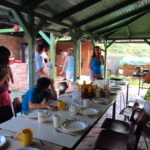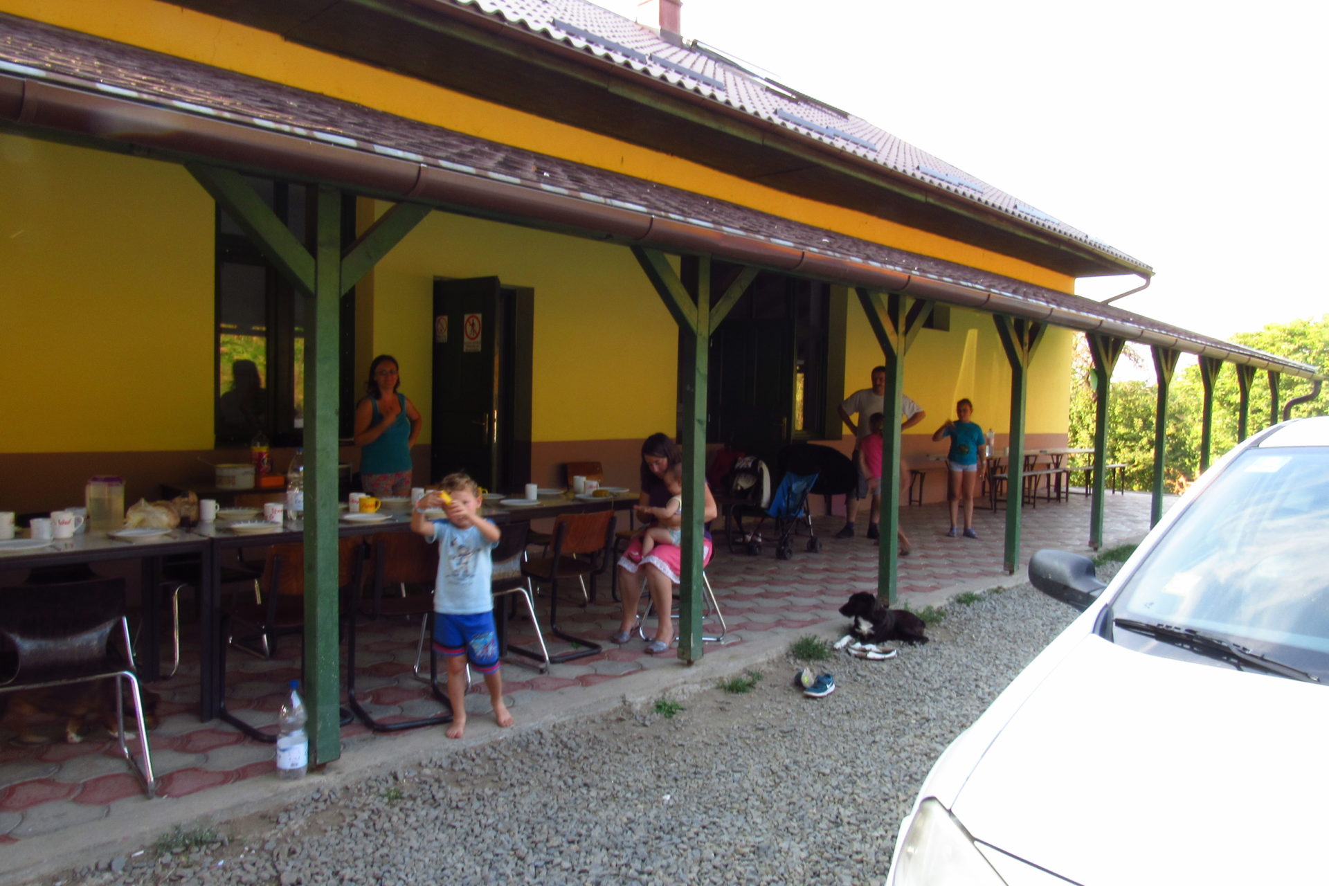 Közben Gergő focizott is egyet, én segédkeztem a konyhában, beszélgettem a “lányokkal”. Gergő az egyik fiúval, aki a milicián dolgozik, beszélt még sokat. Van itt egy zenetanárnő, akinek a papája citeraművész, aki 40 éve létrehozta a magyar református közösség citera zenekarát. Átír zsoltárokat, és azokat adják elő így családosan. A férje és a gyerekek is gyönyörűen énekelnek, citeráznak. Ezt ugyebár a tábortűznél ki is élvezhettük. Nagyon szívesen látnak minket, de jó sok félelmet is megpróbáltak elültetni bennünk. Szerencsére azonban ez nem annyira hatott ránk. Nem szeretném azt állítani, hogy nem tartok a kóbor kutyáktól és a vad cigányoktól, de azt hiszem, ez már egy egészséges viszony.