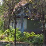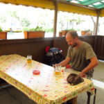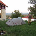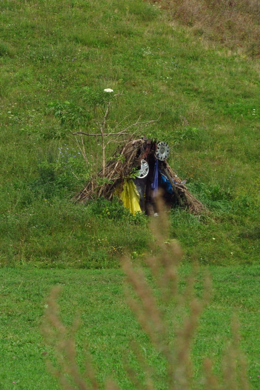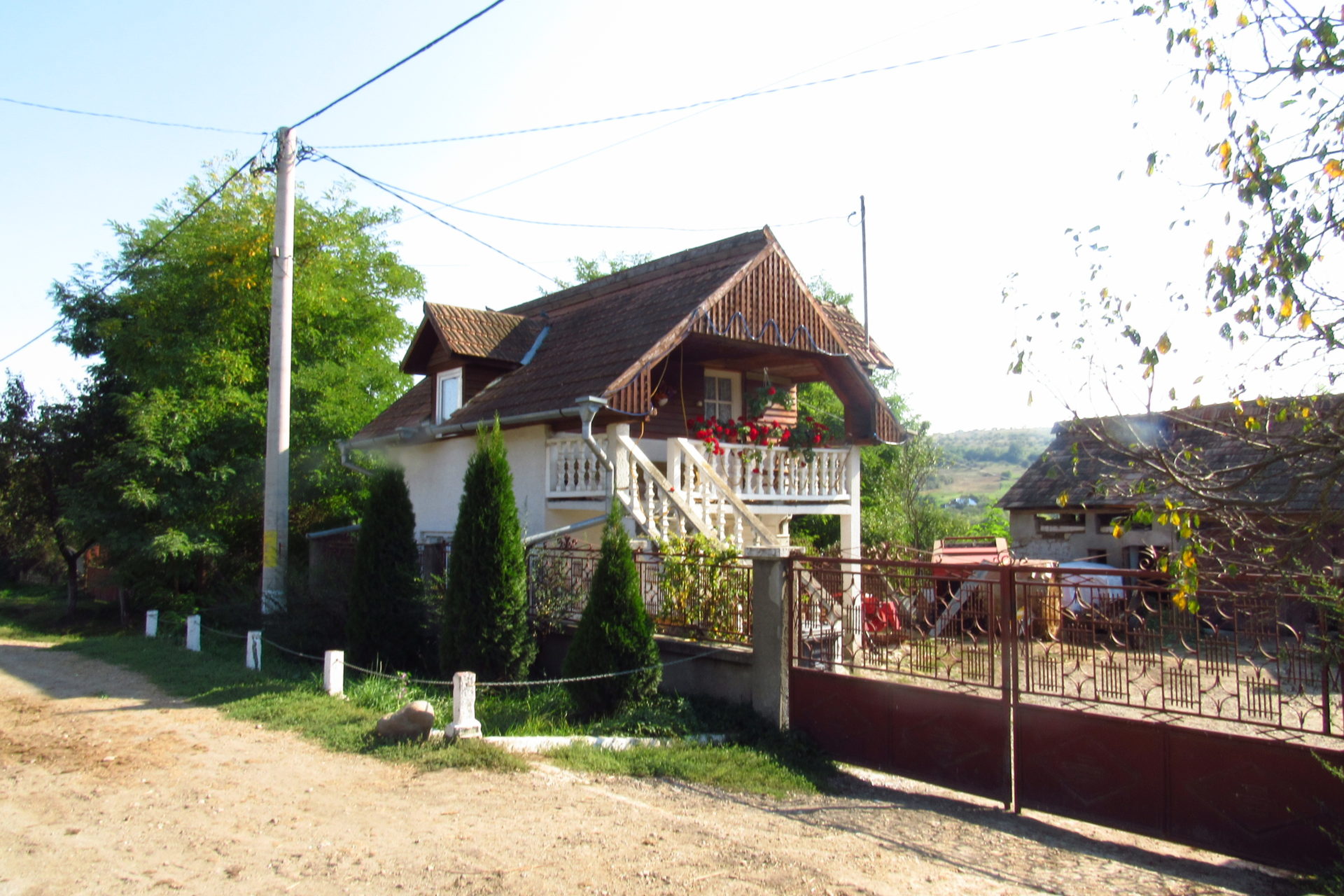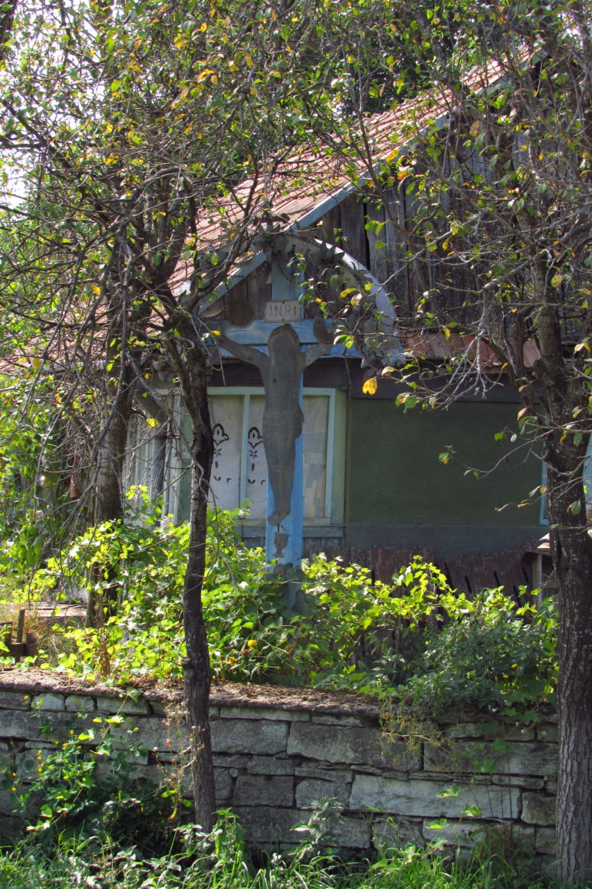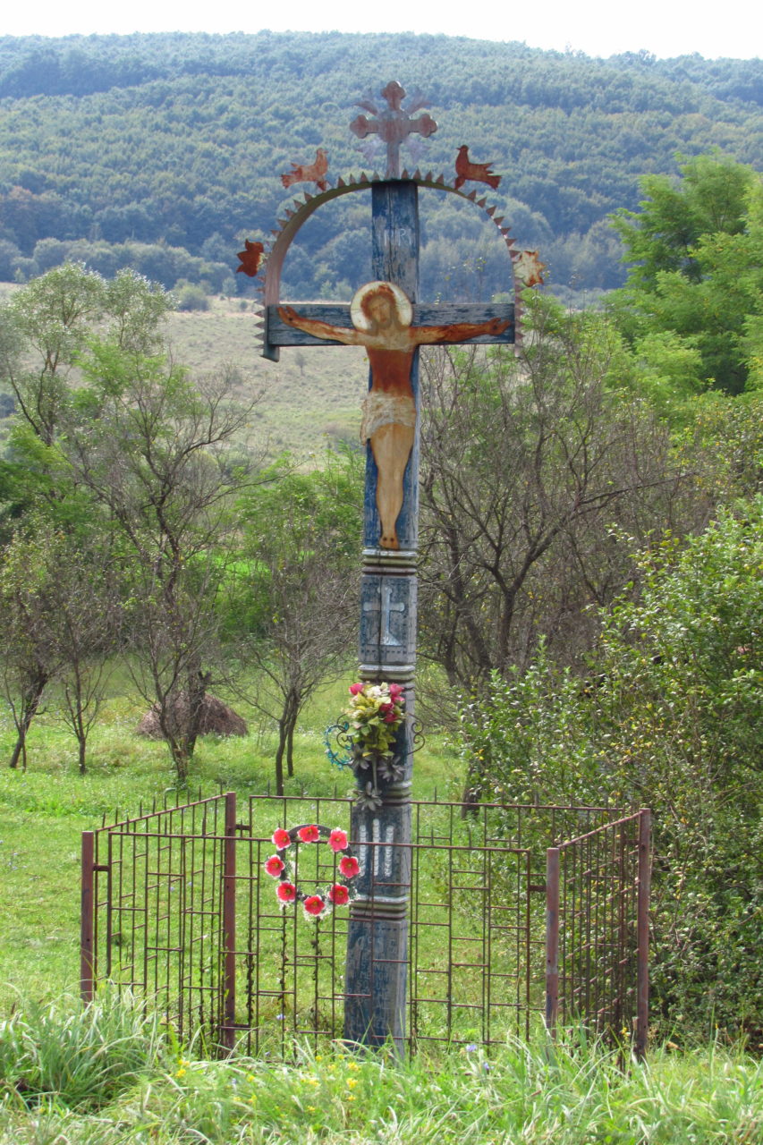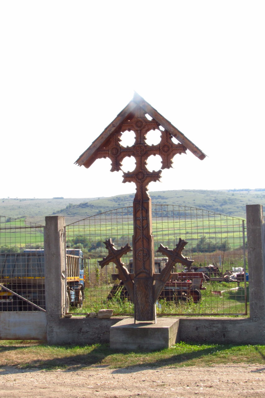 Elállt az eső viszonylag hamar, és tényleg jó meleg lett. Aminek hatására a csigák odébb álltak. Összepakoltunk, és útnak indultunk. Először ugyan még sátrat szárítottunk. Viszonylag gyorsan beértünk egy faluba. Azt kell, hogy mondjam, nekem egyre jobban tetszenek ezek a román falvak. Az építészetük igazán szép. Nem igazán használnak betont, hanem követ és gyakran natúr téglát, ezenkívül vályogot. Nagy, magas, szép faablakos házak és egészen pici, szinte már babaháznak mondhatók is vannak. Minden kertben van szinte olyan házikó, mint nálunk a nyári konyha, de itt rendes kis házikónak van megcsinálva. Hihetetlenül aranyos némelyik. Van olyan, aminek mini tornáca van, mini virágládákkal. Az asszonyok némelyiknél kint ülnek és beszélgetnek. De vannak rendes lakóházban is ilyen kisebbek. Nagyon helyesek. A házak kimondottan szépen vannak díszítve, kellemes az udvaruk is. A nyers téglaházak ablaka gyakran kék, és fehér keretben van, vagy fordítva. Sok a lugas, a virágoskert. Némelyik házikó olyan, mintha egy mesében szerepelne. Nagyon élvezem ezeket, és jó sokat fotózok is. Más itt, mint amit a városok rendezetlenségéről írtam. Régi házak, rendben tartva. Tetszenek a kerítések is. Sok fa és sok szép kőkerítés van. És persze a keresztek. Mindig, amikor már azt gondolom, sok az egyforma is, kiderül, hogy nem, és van még száz variációja a dolognak, csak nem voltam figyelmes. Elképesztően szépek is vannak, és van néhány vicces is, és jó régi, faragott is. Jó, hogy eldöntöttem, hogy mindegyiket fotózom.