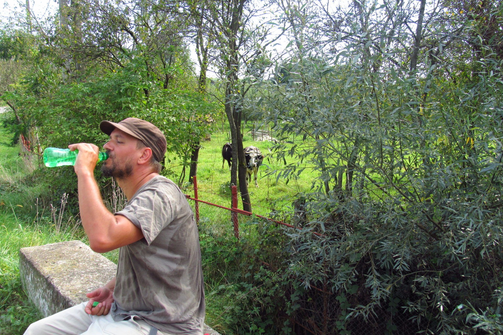 Szóval beértünk az első faluba. (Ciumfăia / Csomafája) Itt csak megálltunk egy percre megnézni, hogy jó felé megyünk-e, mert előttünk egy jó nagy meredek út volt, és kicsit reménykedtünk, hátha mégse arra kell mennünk. De jó fele mentünk. Vicces volt, mert itt egy kis híd mellett álltunk meg, és a mellette levő kertben a két tehén annyira kíváncsi lett ránk, hogy egész közel jött. Persze volt kerítés, de akkor is nagyon közel voltak már.