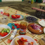 Vicces egyébként egy műcsűrben, egy festett lócán ülve laptopon írni! Na, ilyen ez a hely! A másik azért elég abszurd dolog, hogy őrünk elmondása szerint itt nyáron folyamatosan néptánc, népzenei és kézműves táborok vannak. Ilyenkor jó sok vendég van. Működtetnek kocsmát is. Na és itt jön az abszurditás része a dolognak. Ilyenkor őket, és még egy céget, akik ilyesmivel foglalkoznak, arra alkalmazzák, hogy a falusiak, akik bejöhetnek ugyan, le ne üljenek. Hogy miért? Mert foglalják a helyet a vendégek elől, és azt nem lehet. Vagyis vásárolhatnak, de nem ülhetnek le. Na, ez az! Ez az, amit itt érezni lehet, ez a „hangulata” a helynek. (Szeretném itt megjegyezni, hogy tudatában vagyok annak, hogy ez, amiket leírtam, egy szubjektív vélemény. Tudom, de így látom, látjuk.)
