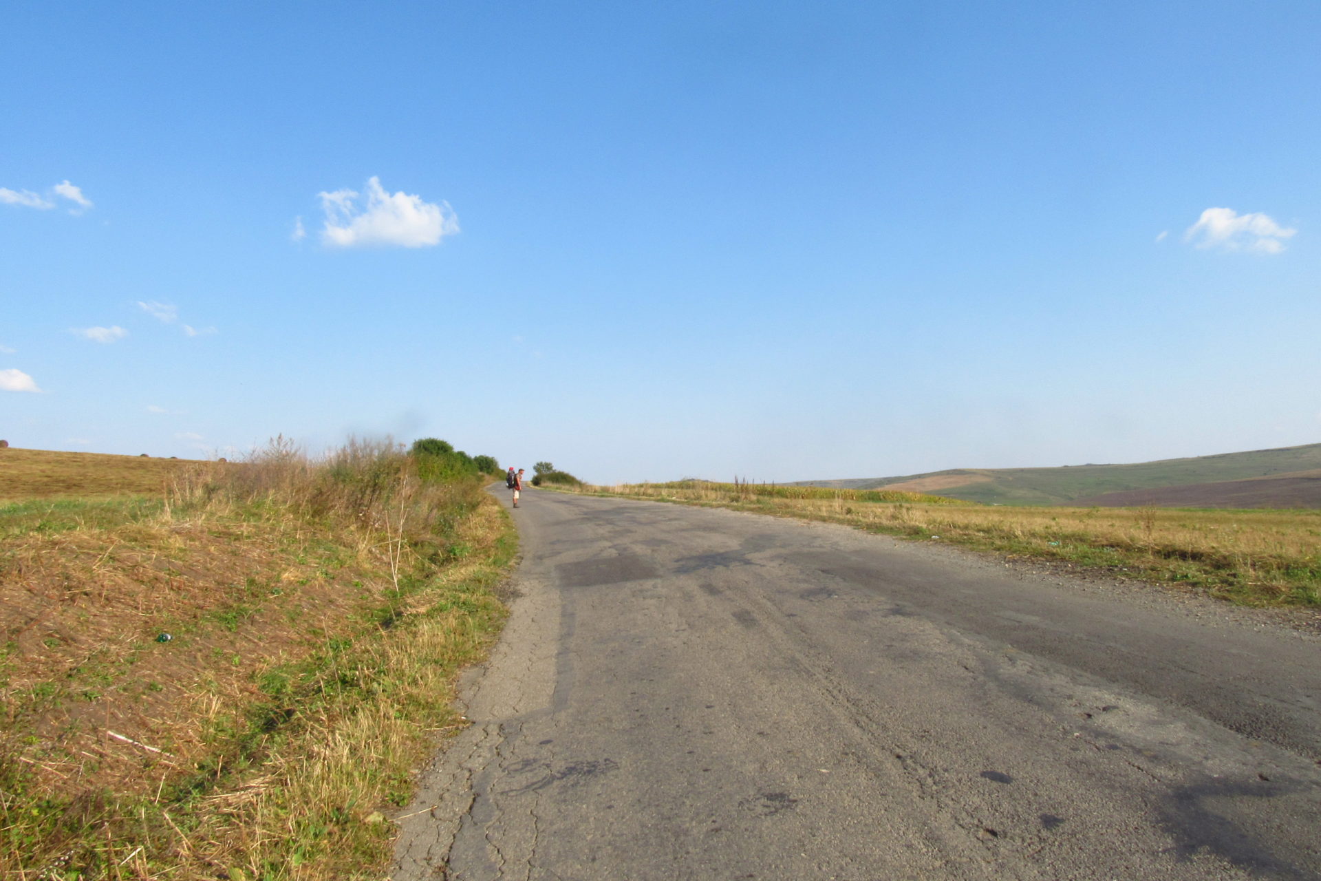 Úgy döntöttünk (mint ahogy azt már írtam előbb is), nem bízzuk magunkat ezentúl a jelölt útra egyáltalán. Ráadásul az el is kerüli a falvak nagy részét. Különösen a román falvakat. Haladunk a magunk útján. Meglátjuk, mit hoz elénk… Egyébként reggel hatalmas köd és elég hűvös volt. Mostanra már kisütött a nap. Érdekes, mennyire más már itt a hegyek között a nap fénye is. Persze ebben benne van az ősz is, de valahogy ez a hegyes, dombos vidék nagyon más. Hihetetlenül szép. Ja, itt most ez a terület egy főút mellett van. Jó hangos. De eddig hiába mentünk betonúton, szinte csak lovas szekérrel találkoztunk. Na meg traktorokkal. Ez a kettő a legtöbbet használt közlekedési eszköz. Persze sok autó is van, de nem azokban a falvakban, amiken mi haladunk át. A nénit a bácsi vagy szekérrel, vagy traktorral hozza el a boltba! Nem autóval! Annyira szép ez! De itt nagy a zaj, már az eddigiekhez képest.