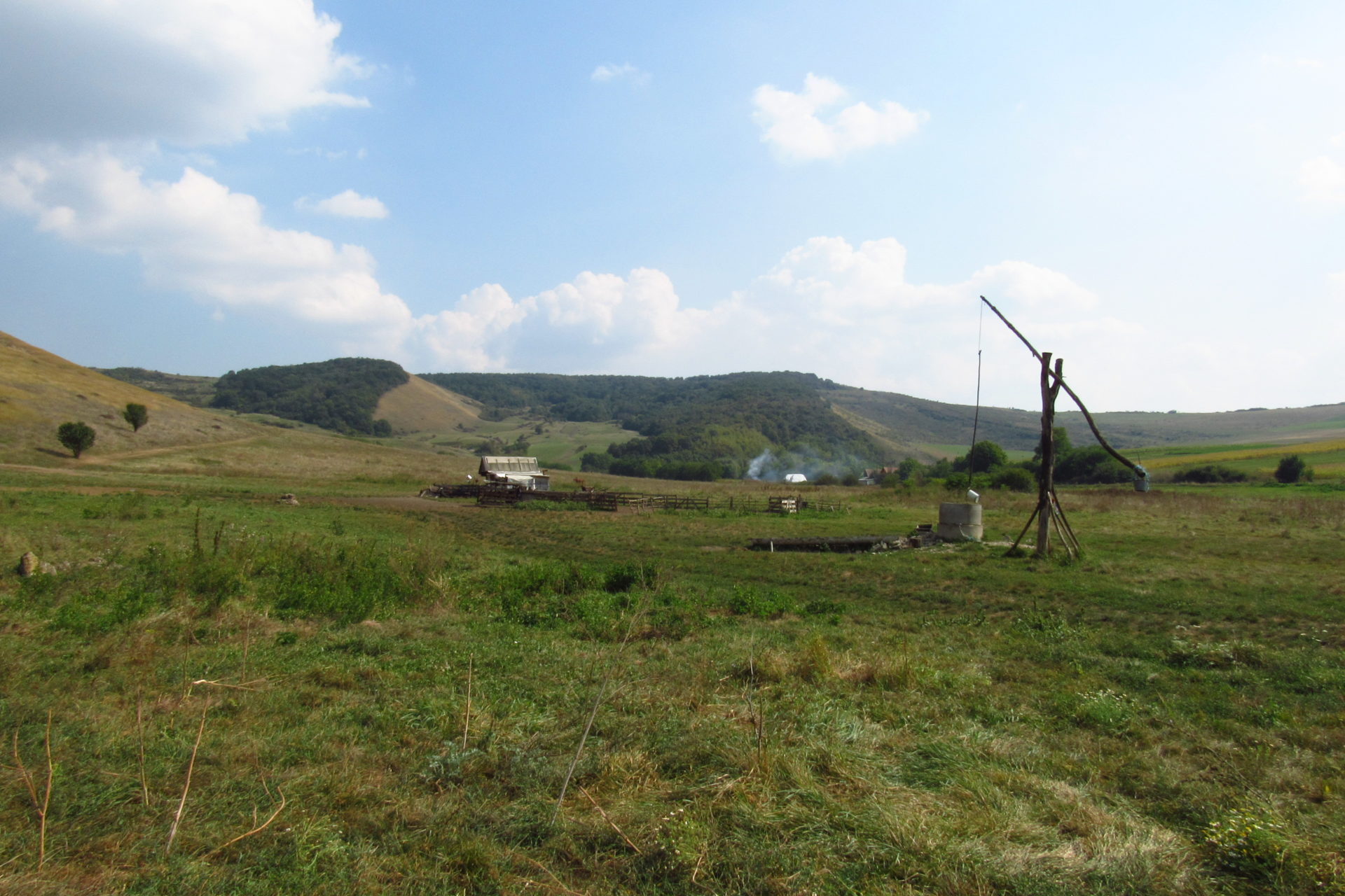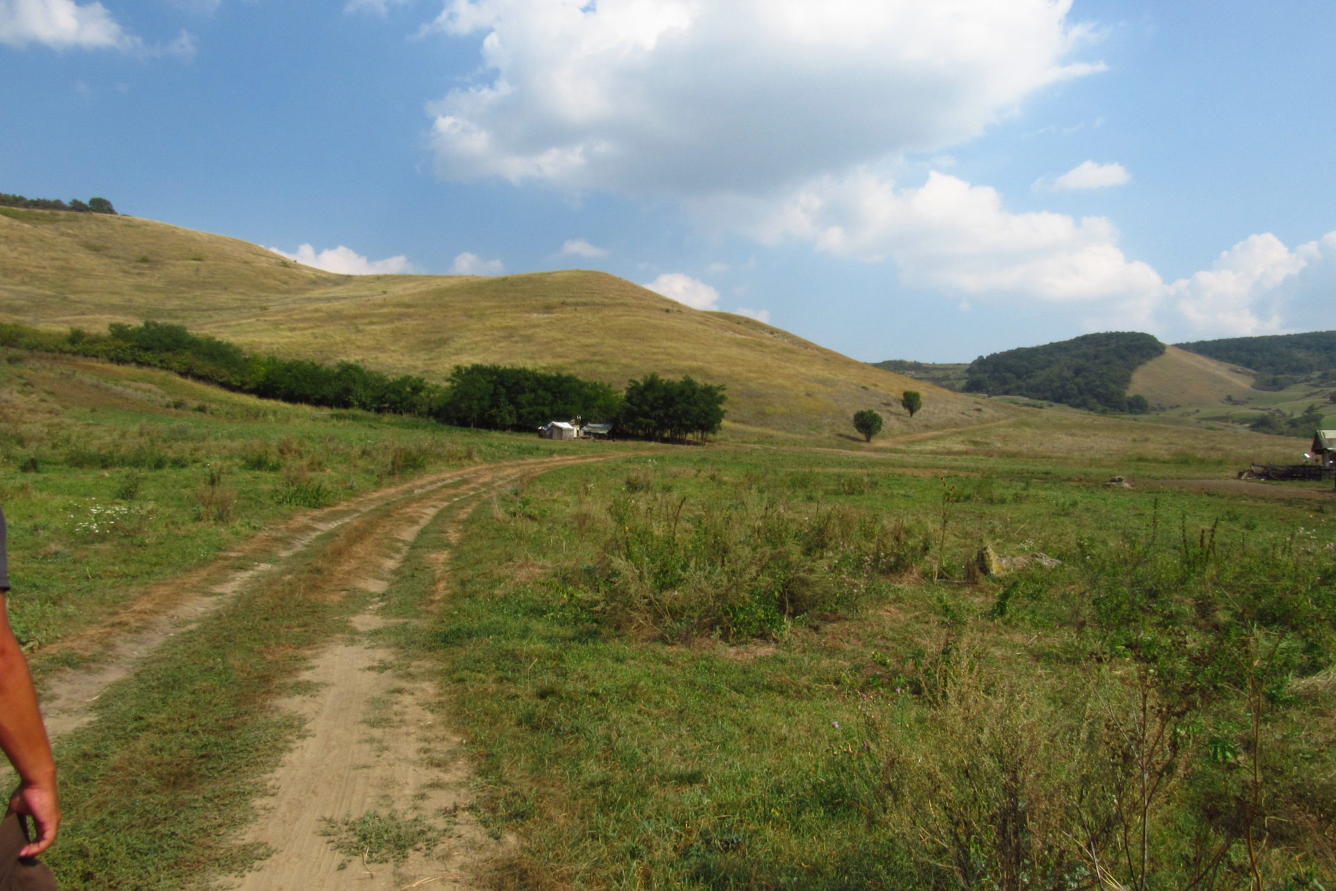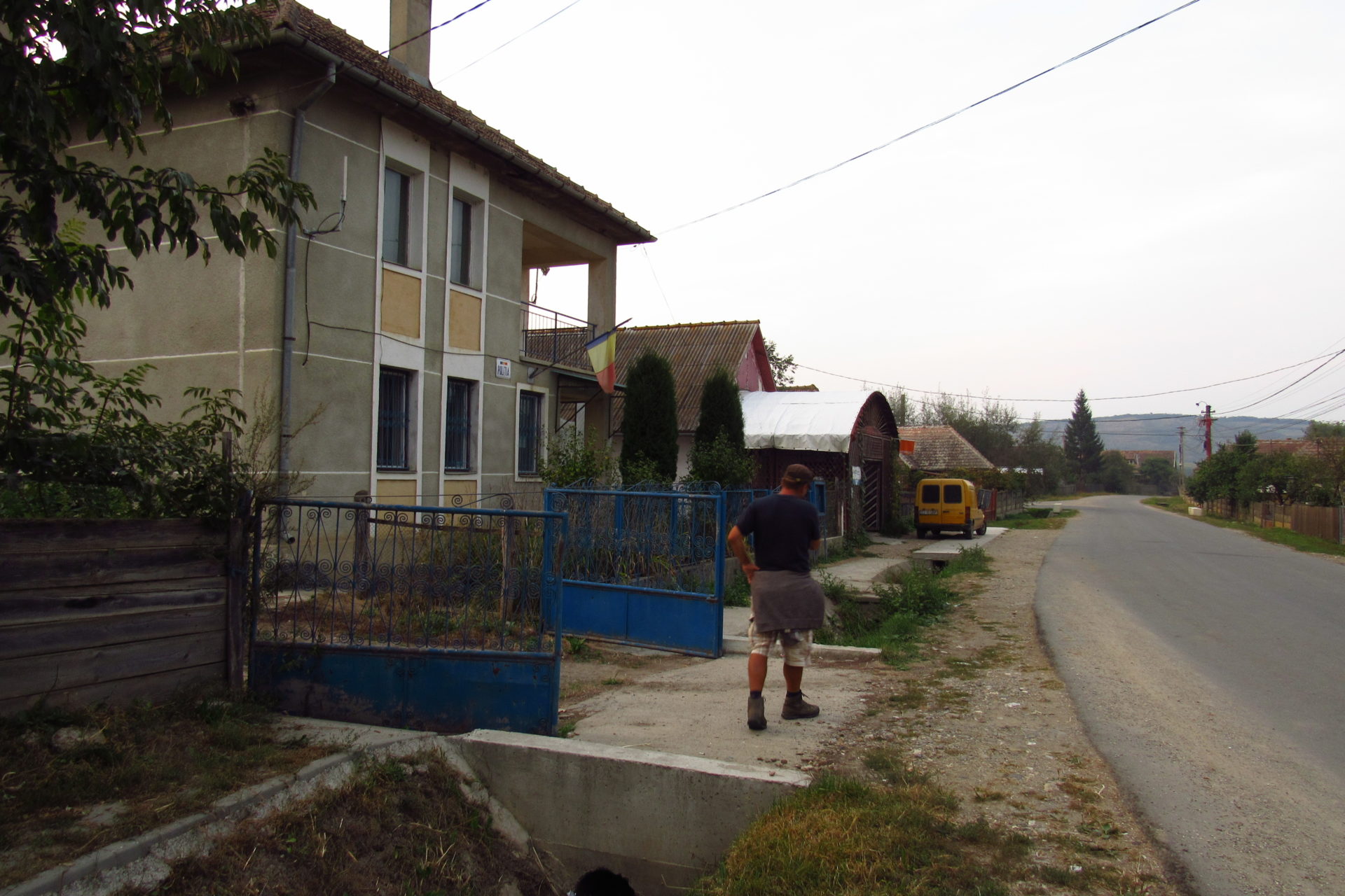 Egy laposabb részre értünk ezután, majd kicsit lejtett az út. A falu is végre látszani kezdett. Azért ezt már nagyon vártuk! Eddigre kb. 10 km-t haladtunk előre (és persze fel és le). Azt azért megbeszéltük, hogy ez az adag sokkal többnek számít fáradságilag. De mindegy ez, mert akkor is ennyit haladtunk, ha fárasztóbb a dolog, ha nem, ha hegy, ha nem. Találkoztunk egy szekérrel, amin egy nő meg egy férfi ült. Magyarok voltak. Nagyon helyesek. A nő kicsit olyan népies ruhában volt. Itt már megint nagyon máshogy beszélnek, mint Szilágy megyében. Ez kicsit már jobban hasonlít a székelyek beszédéhez. Egyébként a táj és minden nagyon más, amióta Kolozs megyében vagyunk. Gergőnek nagyon tetszik ez a rész. Mondtam, hogy hát még mi lesz, ha átérünk a székely részre! De ez is, ahogy itt beszélnek, tényleg nagyon szép és élvezetes. Kicsit eltanakodtak azon, hogy elhiggyék-e, hogy onnan messziről gyalog jöttünk, de végül jót nevettek rajtunk, és hittek nekünk. Kiderült, hogy a “gödörben” van a nyájuk és az esztenájuk. El is mentünk mellette. Sok juhuk van. Tejjel foglalkoznak. Itt laknak a faluban, de mindennap kiszekereznek oda. Ők még nem jártak ott gyalog, de azon az úton mennek, amin mi feljöttünk. Úgyhogy elég hihetetlen volt nekik, hogy arról jöttünk valóban. Mondtuk, hogy mi is elég hihetetlennek tartjuk, hogy feljöttünk itt, de mégis így van. Na, jót nevettünk, és mindenki ment az útjára tovább.