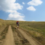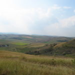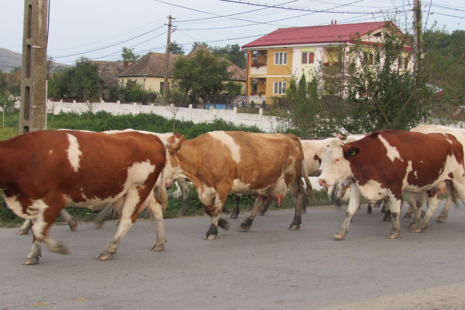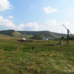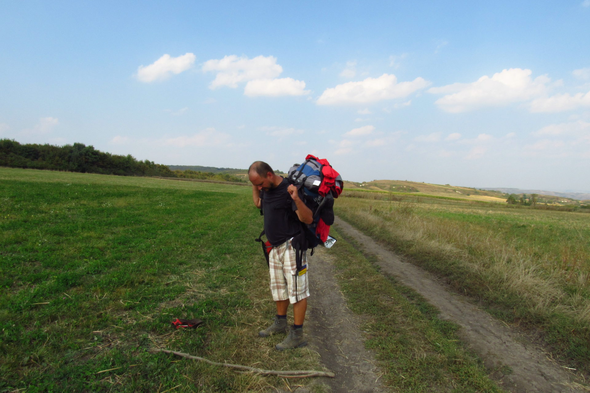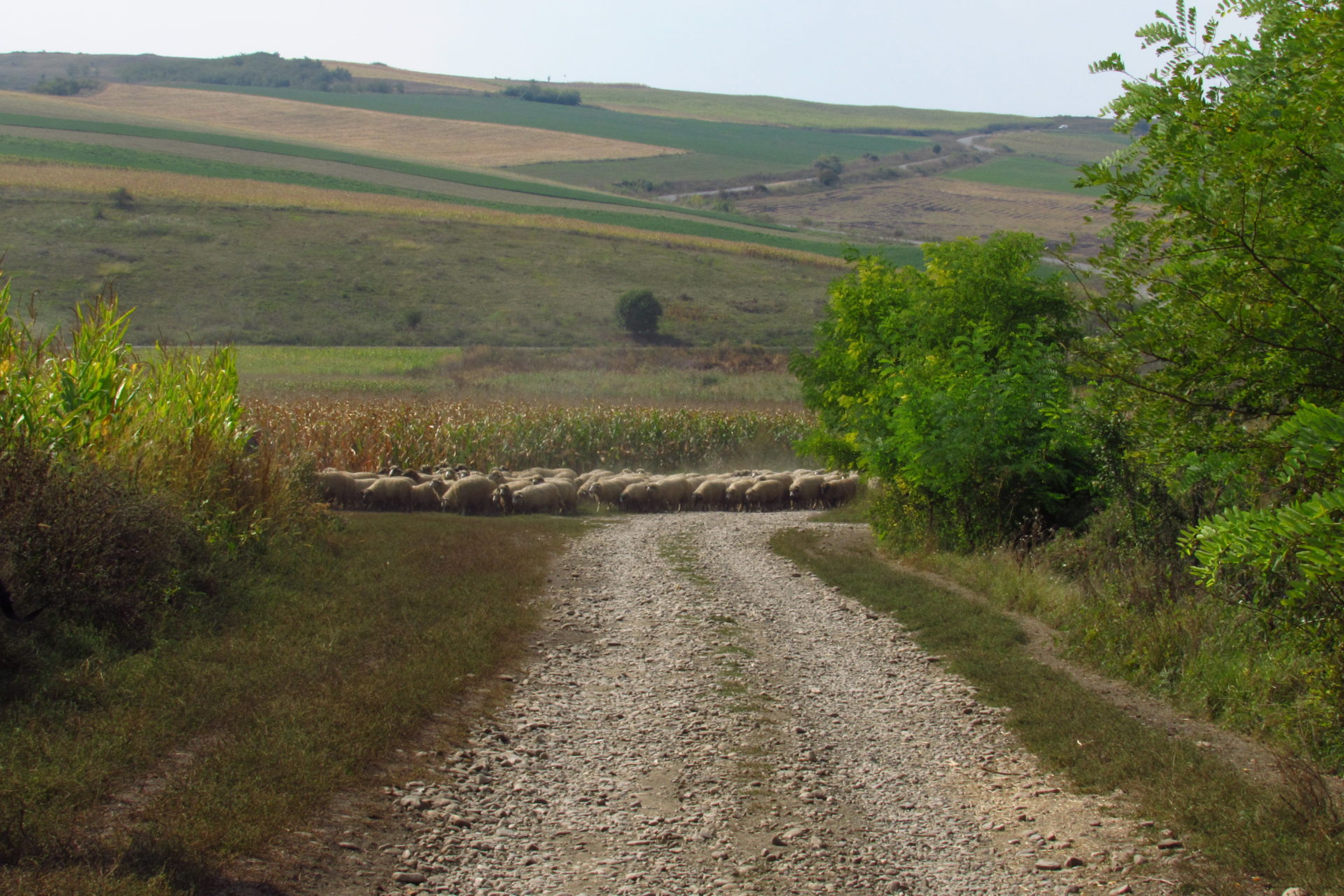 Egy laposabb részre értünk ezután, majd kicsit lejtett az út. A falu is végre látszani kezdett. Azért ezt már nagyon vártuk! Eddigre kb. 10 km-t haladtunk előre (és persze fel és le). Azt azért megbeszéltük, hogy ez az adag sokkal többnek számít fáradságilag. De mindegy ez, mert akkor is ennyit haladtunk, ha fárasztóbb a dolog, ha nem, ha hegy, ha nem. Találkoztunk egy szekérrel, amin egy nő meg egy férfi ült. Magyarok voltak. Nagyon helyesek. A nő kicsit olyan népies ruhában volt. Itt már megint nagyon máshogy beszélnek, mint Szilágy megyében. Ez kicsit már jobban hasonlít a székelyek beszédéhez. Egyébként a táj és minden nagyon más, amióta Kolozs megyében vagyunk. Gergőnek nagyon tetszik ez a rész. Mondtam, hogy hát még mi lesz, ha átérünk a székely részre! De ez is, ahogy itt beszélnek, tényleg nagyon szép és élvezetes. Kicsit eltanakodtak azon, hogy elhiggyék-e, hogy onnan messziről gyalog jöttünk, de végül jót nevettek rajtunk, és hittek nekünk. Kiderült, hogy a “gödörben” van a nyájuk és az esztenájuk. El is mentünk mellette. Sok juhuk van. Tejjel foglalkoznak. Itt laknak a faluban, de mindennap kiszekereznek oda. Ők még nem jártak ott gyalog, de azon az úton mennek, amin mi feljöttünk. Úgyhogy elég hihetetlen volt nekik, hogy arról jöttünk valóban. Mondtuk, hogy mi is elég hihetetlennek tartjuk, hogy feljöttünk itt, de mégis így van. Na, jót nevettünk, és mindenki ment az útjára tovább.