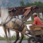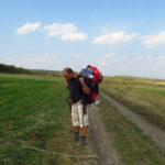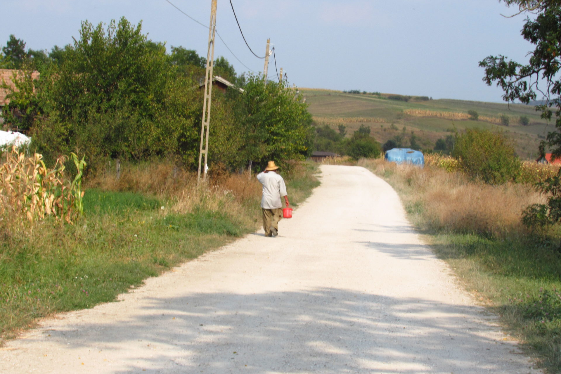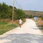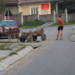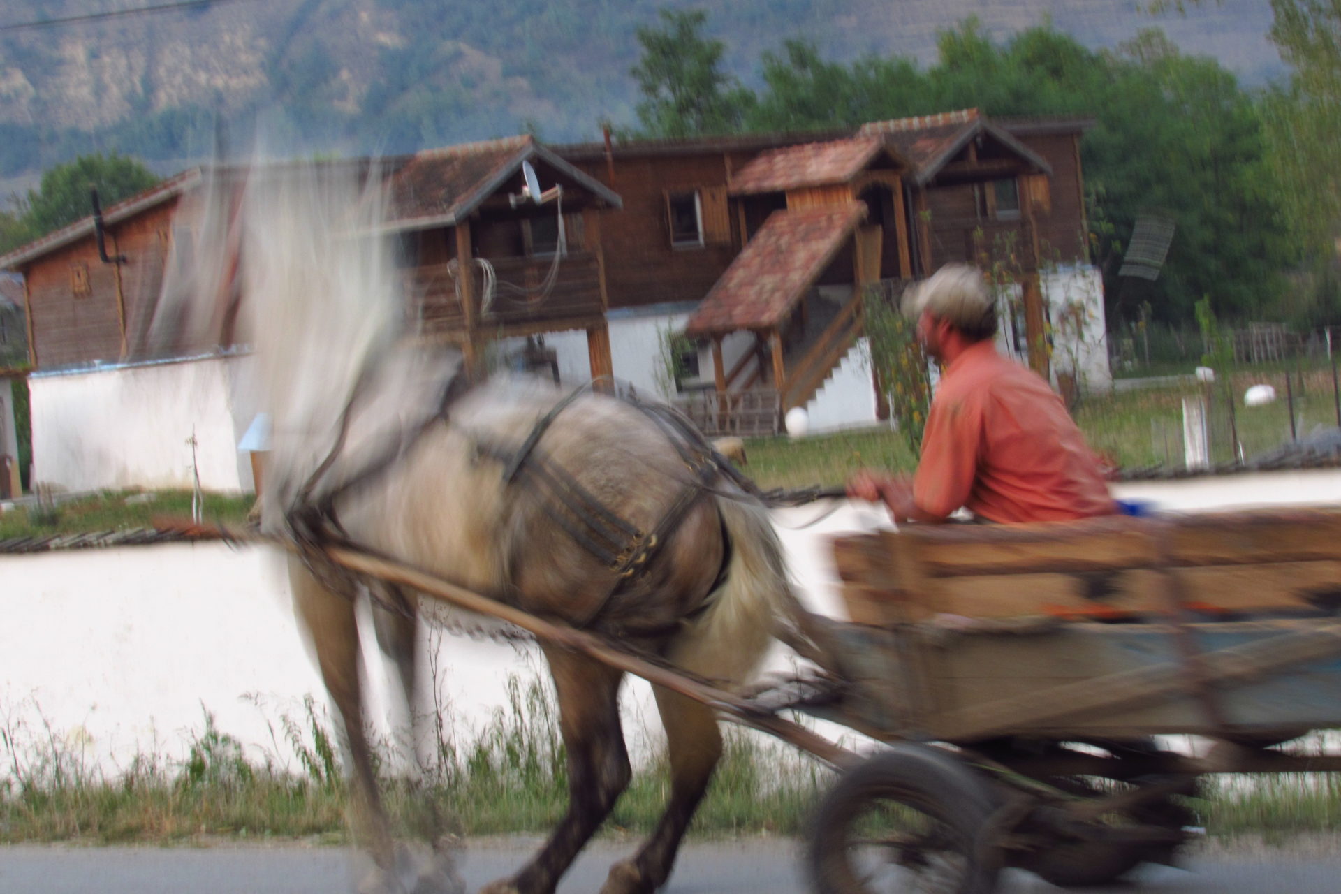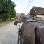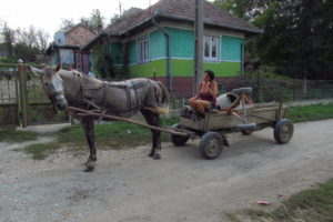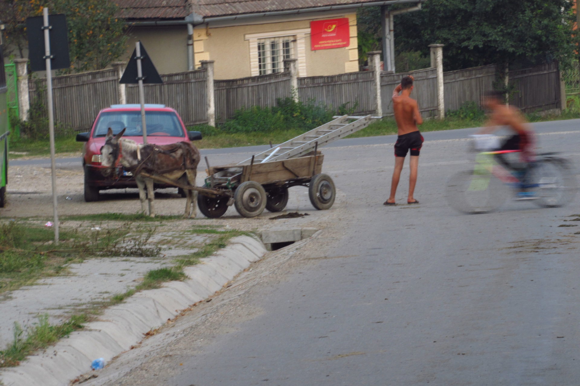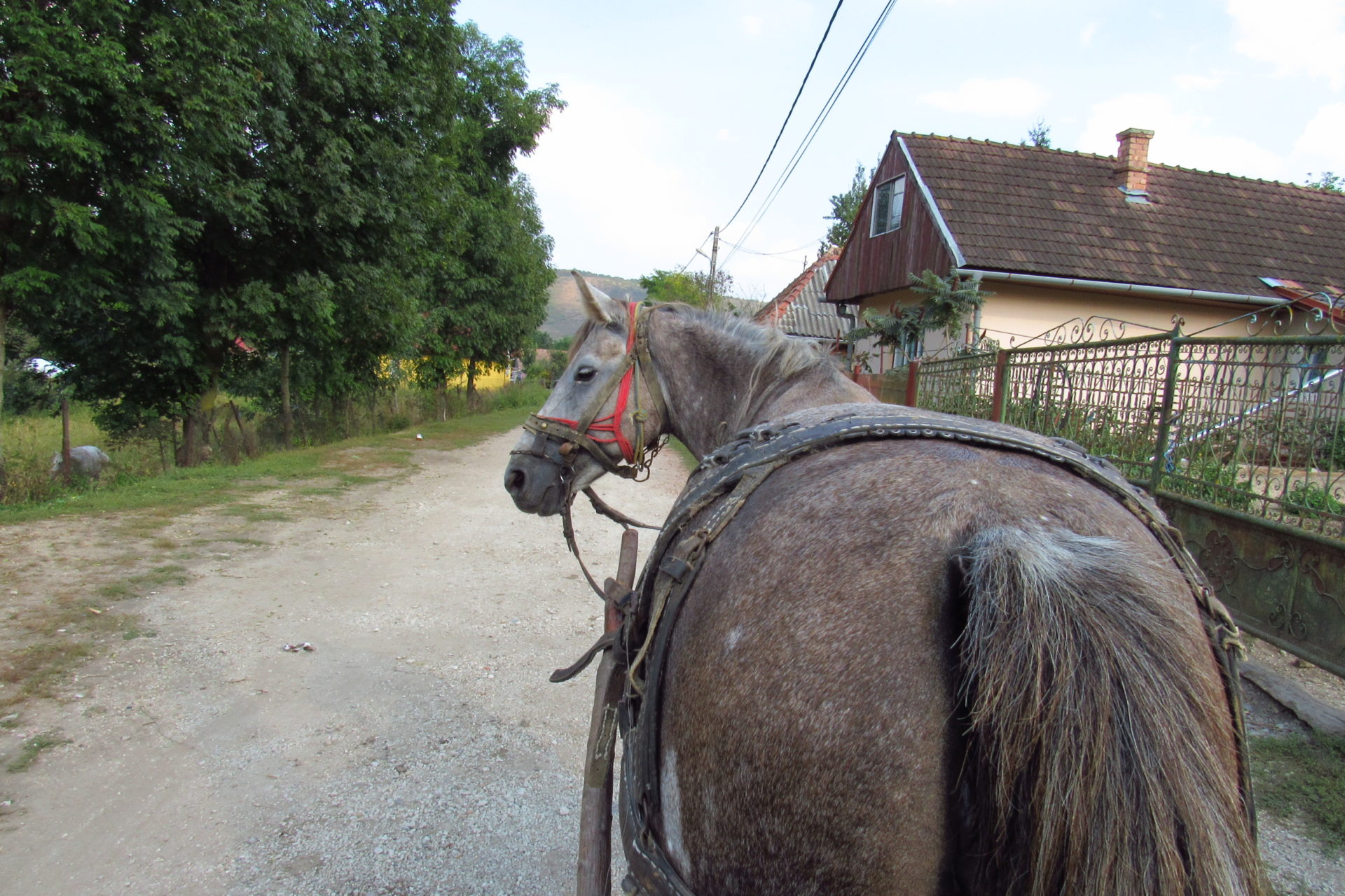 Haladtunk előre, de valahogy elég reménytelennek tűnt, hogy hol lehet a központja a falunak. Ekkor jött egy srác szekérrel. Megállt, és mondta, hogy elvisz minket, mert messze még a faluközpont. Gergő eleinte nem akarta, mert megfogadtuk, hogy csak gyalogolunk. Mondta is, de a srác valamit viccelt ezzel, és akkor én már tudtam, hogy muszáj lesz vele menni. Nem csak, mert úgyse hagyja, hogy ne, hanem mert olyan élmény is lesz, ami nem kihagyható. Így lett. Felültünk és egy annyira, de annyira tipikus itteni srácot ismertünk meg! Én elöl ültem, Gergő hátul. A srác beszélt, beszélt és beszélt. Imádtam! Humorizált, cukkolt minket. El nem hitte, hogy van ilyen is, amit mi csinálunk. Annyira, de annyira helyes volt az egész. Persze elkanyarodott velünk a falunak egy másik részébe is, mert valamit kellett oda vinni. Itt leszállt Gergő is. Én maradtam a szekéren, de a ló megindult. Gergő megfogta a szekér végét. A srác meg a távolból a haverjával, akihez jött, röhögött és mondta, hogy nem megy el, nem kell félni. Vissza is hívta a lovat. Csupa olyan szót használ, mint az árkosi barátaim. Ugyanúgy beszél a lóval. Teljesen össze vannak nőve. Kb. 10 vagy akár még több méterről is úgy tudja irányítani szavakkal, hogy a ló mindent megcsinál. Imádom ezt! Tényleg messzebb volt a faluközpont, mint gondoltuk. És jó lent. Tele lettünk lószőrrel, mert veti le a ló a nyári szőrét, és nő a téli. A lovat “gyere idé”-nek, vagy “uccu he”-nek hívja a srác. Nincs rendes neve, mert minek az, tudja, hogy neki szól. Na, ez az egyszerűség, ezt imádom. Annyira természetes a kapcsolata a lóval. Nem becézgeti, nem. Együtt él vele. Annyira jó ez. És ez a humor! Mondtam is Gergőnek, hogy most ízelítőt kapott a székely humorból. Ott aztán majd! Szívatnak rendesen, de én ezt szeretem nagyon. És, ha belemész a játékba, akkor nagyon lehet élvezni is! Hát most is ez volt. Nem volt több ez a találkozás fél óránál, sőt talán még annyi se. Nem tudjuk egymás nevét se, mert senkinek nem ez volt a fontos. Mégis, azt hiszem, ez egy meghatározó része lesz emlékként az utunknak. Nagyon jó, hogy nem ragaszkodtunk semmihez. Meg is beszéltük, hogy a szekerezés bele fog férni a dologba, akárhol járunk mostantól. Végül is a dolog lényege pont az emberek és az ismerkedés, nem pedig a gyaloglás önmagáért. Egyébként itt ez az egyik alap közlekedési eszköz. Napok óta, mióta Kolozsvár környékén vagyunk, jó sok repülő száll el felettünk, mert itt van egy repülőtér. Mindig eszembe jut, milyen fura ez. Egyre gyorsabb és gyorsabb eszközöket hozunk létre a haladásunkhoz. Már a bicikli is jóval gyorsabb, mint gyalog, majd a szekér, az autó, a vonat, a repülő és az űrhajó. Repülővel 1 óra alatt ide lehet érni Budapestről. Elég abszurd! És mit látunk ezalatt! Semmit, de gyorsan odaérünk, ahova akarunk. Ez van mindenhol, otthon is a városban vagy a környéken. Cél a gyors haladás, az odaérés. Ha már valami késik öt percet, kész vagyunk. Na, de visszatérve a mi utunkra. Ez a jó ember kitett minket egy bárnál. Elköszöntünk, majd konstatáltuk, hogy elhagytuk a nagy szekerezésben a karabinert, ami a fényképezős táskámat fixálja. De ez csöppet sem zavart, mert az élmény mindent felülír! Majd kitalálunk valamit. Itt egyébként úgy köszönnek, hogy Egészséget! Ez olyan szép!