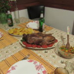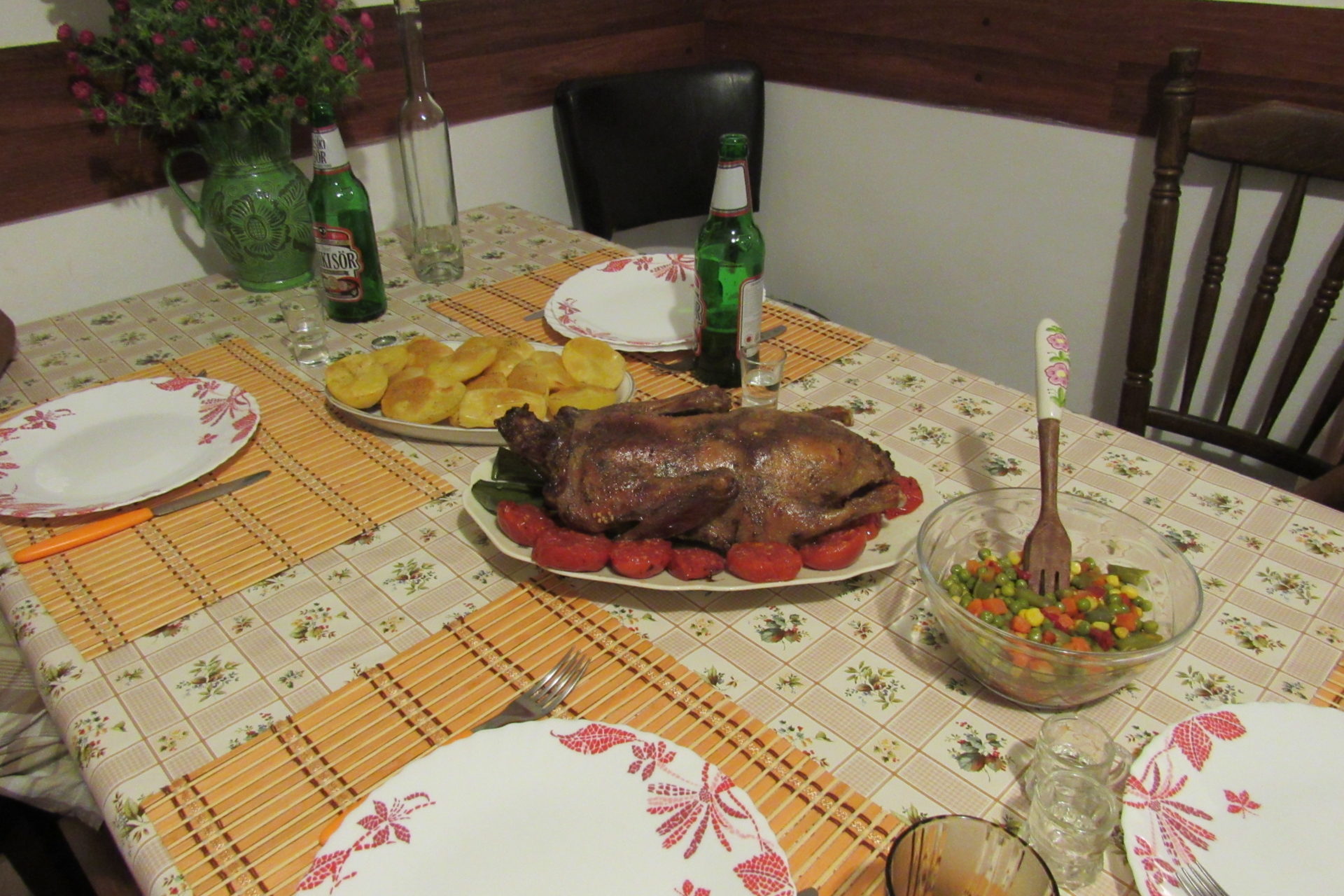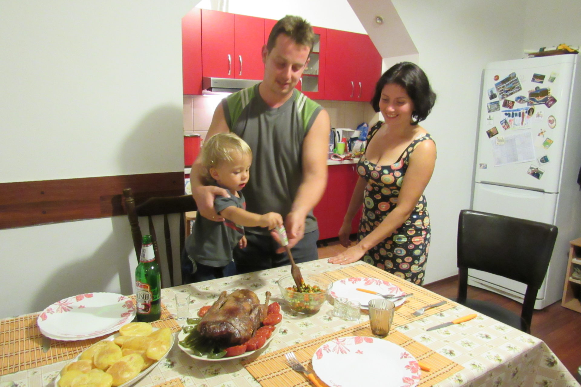 Utána eleget tettünk a vacsorameghívásnak. Helyesek voltak nagyon. (De ez nem írja jól le a valódi élményt.) Sütöttek egy kacsát, nekem külön zöldséget, volt krumpli és sör, és persze pálinka. Jó sokáig beszélgettünk. Kíváncsiak voltak mindenre, és mi is. Nagyon jól éreztük magunkat. Egyébként székelyek. Sepsiszentgyörgy mellől valók. Ott a környékben lelkész a fiú papája és a lány édesapja is. Úgyhogy majd hozzájuk is el kell mennünk. A fiú foglalkozik földdel, állatokat tart és pálinkát készít. A lány a gyermekkel van otthon, és vezeti az általuk létrehozott napközit. Annyira édes egyébként ez a kisfiú. Hatalmas szeretet és béke van otthon náluk. Nagyon jó volt ebben lenni. Azt mesélték, hogy a református egyházat annyira nem támogatják itt a környékben. Ezért is gazdálkodnak pluszban. De szerintem szeretik is csinálni. Beszéltünk Böjte Csabáról. Itt mindenki tiszteli és szereti, de szerintük is van itt más is, amit lehetne támogatni. Ebben egyet is értettünk. Jó sok mindenről volt szó még. Az egyházról, politikáról, a faluról, gyermeknevelésről, a napköziről stb. Ekkor már tudtuk, hogy ez is egy meghatározó hely és találkozás lesz ezen az úton. Ja, és kaptam egy teljesen új és működőképes karabinert is! Egy jó ideje ott volt náluk a kulcstartón. Mint mondták mindig, amikor ránéztek arra gondoltak biztos jó lesz az majd még valamire, így nem tették el onnan. Hát most meglelte szerepét!