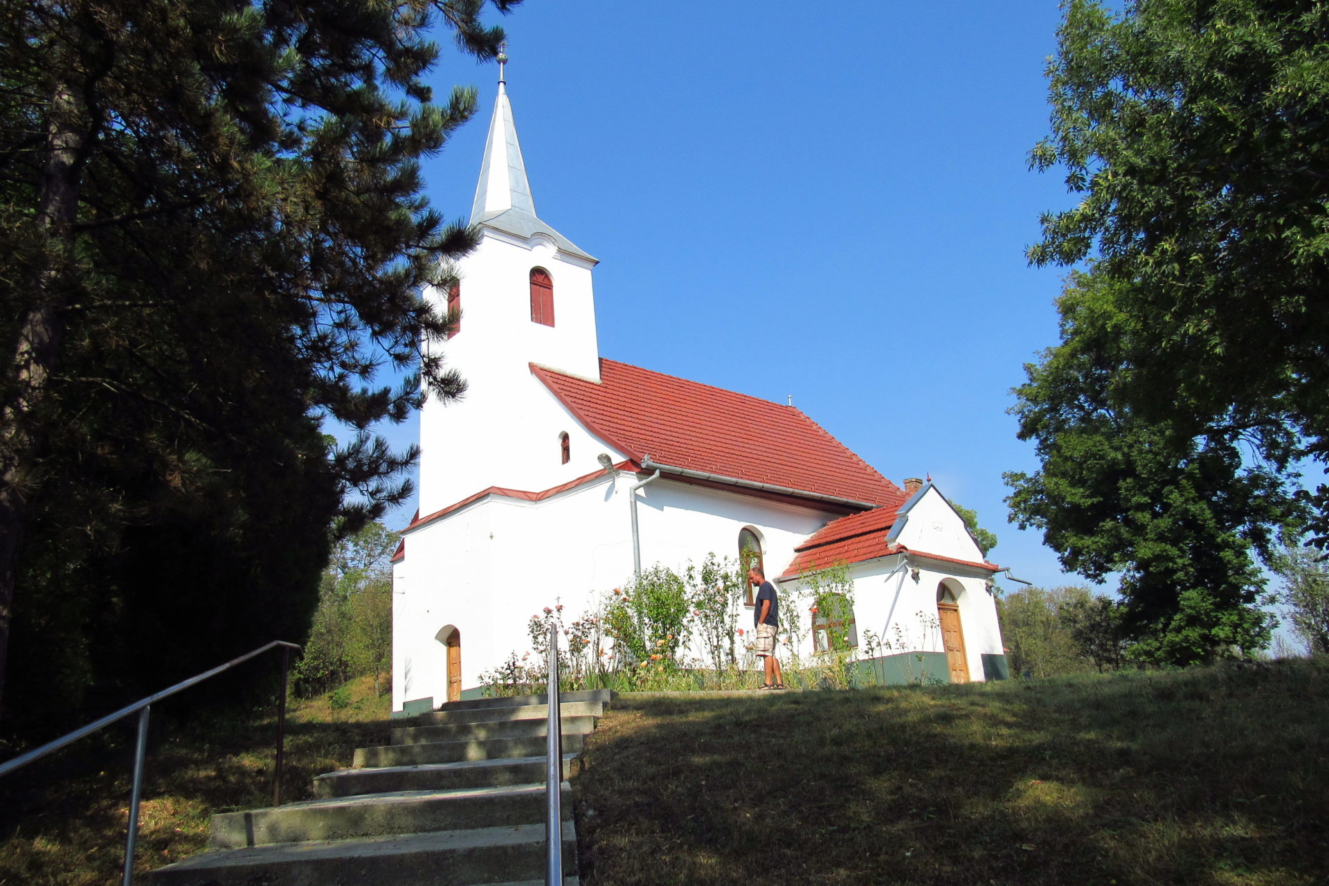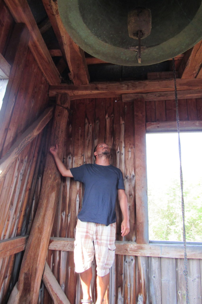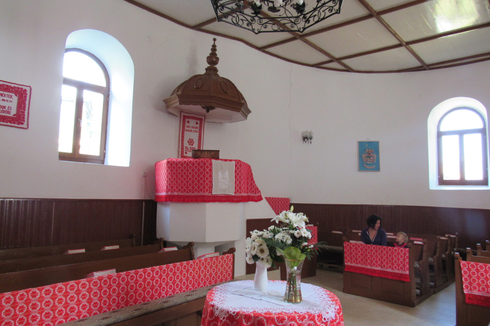 A lány (itt muszáj megjegyeznem, hogy nagyon nehéz így írni, hogy a neveket ki kell hagynom, mert a viszonyunk ennél sokkal, de sokkal szorosabb, mint hogy lánynak nevezzem, illetve a fiút fiúnak!!!) nagyon helyes volt. Mondta, hogy meséljünk, meséljünk még, mert ő annyira élvezi. Annyira édes ez a gyermek is. Nagyon szépen nevelik. És ők is nagyon helyes pár. Kérdeztem a lakás berendezéséről, mert sejtettem, hogy nem az előző lelkész hagyta itt ezeket a nagyon ízléses és fiatalos bútorokat. Persze, ők hozták magukkal. Mondta is, hogy elég nehéz így az élet, mert ez már a második hely, ahol lelkészkednek, és mindig viszik a bútorokat és mindent. Itt lassan két éve vannak, de szeretnének maradni jó sokáig. Az egyetlen gond, ha mire a gyermek iskolás lesz, és nem lesz annyi magyar gyerek, hogy induljon magyar osztály. Ez annyira szomorú. Mindenki elmegy a “szebb” jövő reményében, és itt halnak ki a magyar falvak. Ezért sem olyan jó ez a begyűjtős, városba vagy koleszba menős oktatás. (Ez persze magánvélemény!) Ráadásul itt minden faluban lenne is iskola, nem úgy, mint otthon, hogy körzetesítve van. Itt mindenhol van legalább 4 osztály, de általában 8, tehát nem indokolt, hogy elmenjenek. (12 gyerek kell, hogy legyen.) De mégis így van. Erről jó sokat beszélgettünk, és még egy csomó mindenről. Elmentünk megnézni a templomot is. Nagyon kis szép. Van egy harangtorony is, ahova felmásztunk. Gyönyörű a kilátás onnan. Próbáltuk kideríteni mi van a harangra írva. Gergő felmászott valami alkalmatosságra, és onnan próbálta elolvasni. Ami sikerrel is járt.