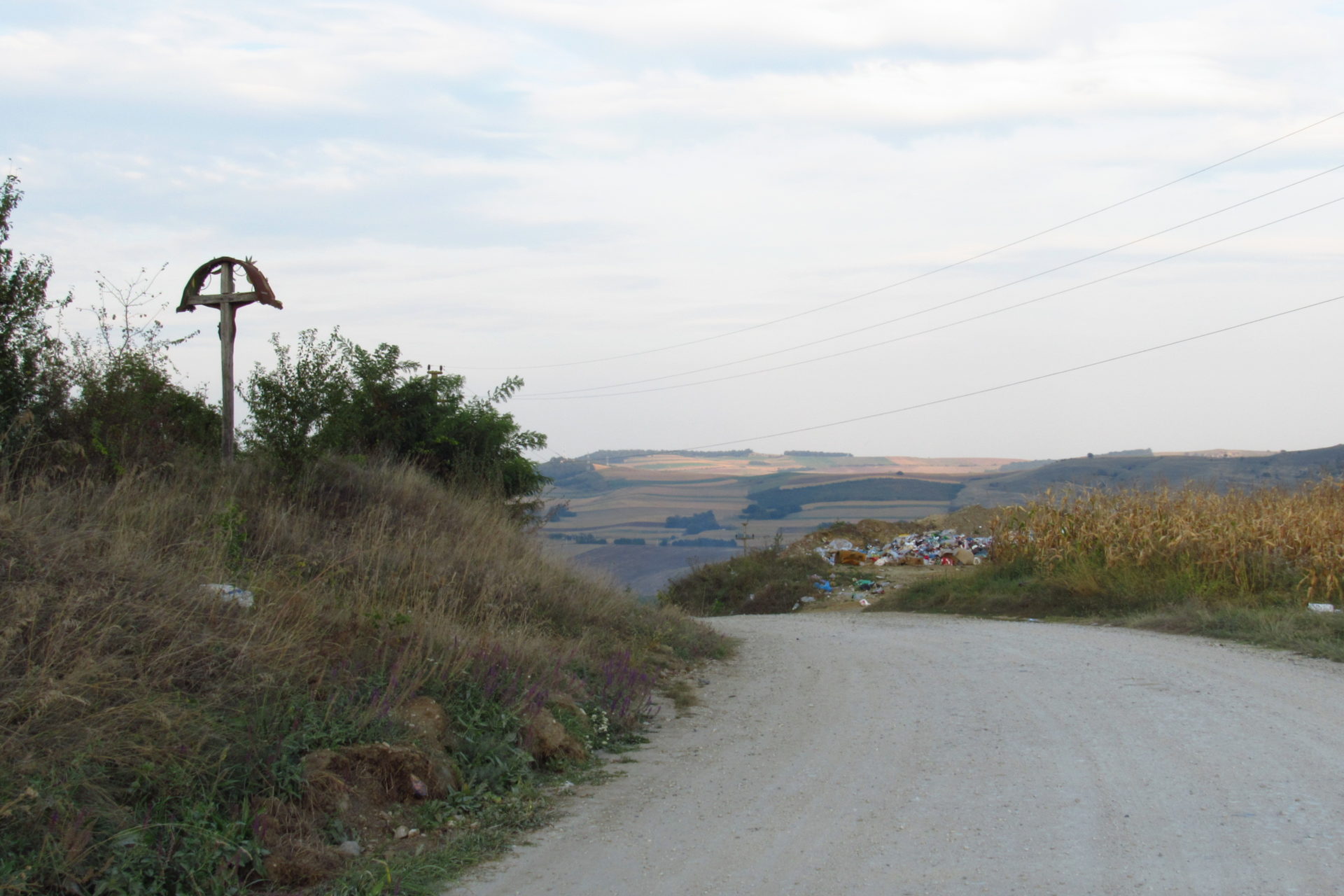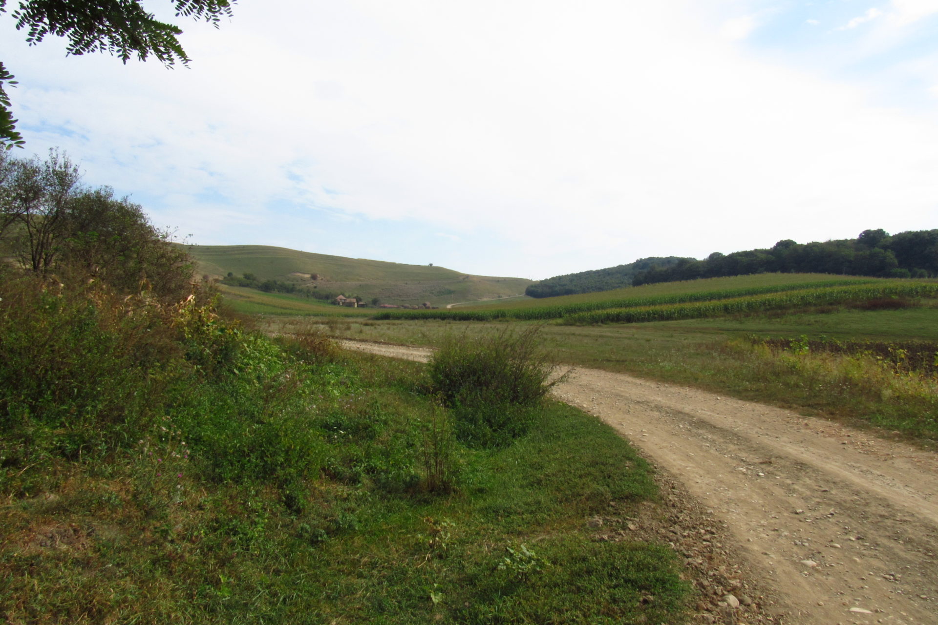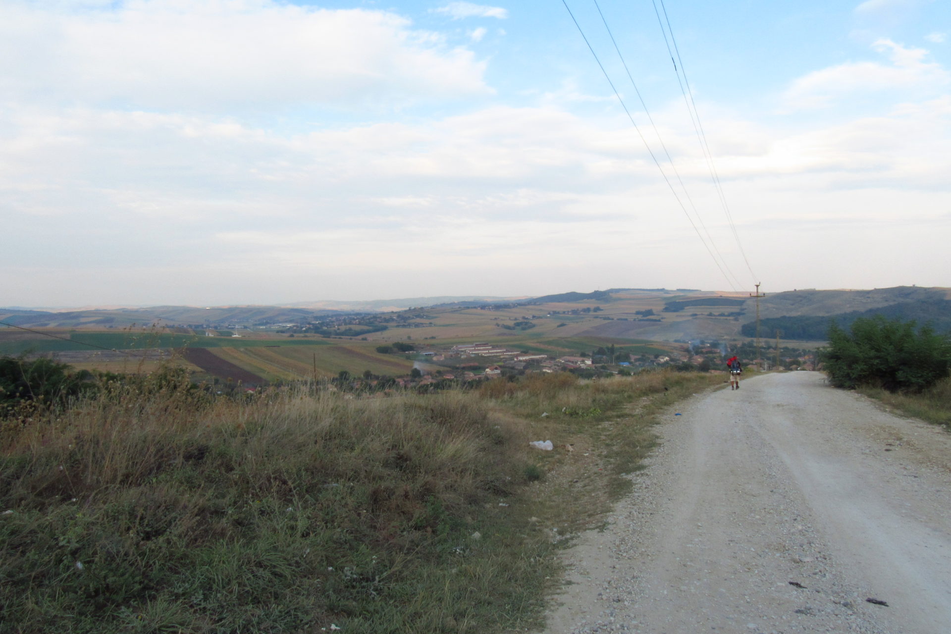 Elindulás után elhaladtunk egy nagy tó mellett, aminél sokan horgásztak. Majd jött az első nagy emelkedő. Volt némi remény, hogy utána lesz egy falu, és fogunk tudni kicsit inni és pihenni. Volt ugyan falu (Berchieşu / Berkenyes), de csak a széle, és nem volt bár. Így, hát továbbmentünk. Le a hegyről. Majd fel egy másikra. Itt találkoztunk cigányokkal, akik csipkét vagy borókát szedtek, meg disznókkal, meg kutyával, meg nyájjal. Elhaladtunk mellettük, majd le a hegyről. Itt végre megláttunk egy falut. Nagyon jó hangulatú kis falu volt. Vişinelu, azaz Csehtelke a neve. Találkoztunk egy bácsival, aki kicsit beszélt magyarul. Nem igazán hitte el, hogy honnan és hova megyünk. Édes volt, mert azt hitte, azért nem érti, mert nem egészen ért magyarul. Mondtam neki, hogy jól érti. Kérdeztem, hol van egy kocsma. Erre felcsillant a szeme, és mondta, hogy telefonon lehet hívni. Először nem értettem, de gyorsan rájöttem, hogy itt nem használják a kocsma kifejezést, és ő kocsit értett rajta, és hogy taxit akarunk hívni. Mondtam, hogy sörről van szó. Erre csak rázta a fejét, kacagott és mondta, hogy az van itt. Meg is találtuk a bárt. Ittunk is egy sört. A pasi, aki itt volt, és egyébként román, nagyon akart nekünk segíteni. Hívott egy számot, és megadta a polgármester (később kiderült, hogy csak alpolgármester) nevét, aki magyar Sármáson, ahova tartottunk. Nem tudta elérni. Mint később kiderült, ez nem is volt akkora baj. Hívtuk mi is a református lelkészt, aki meg volt adva a Mária út kapcsán, de mi se értük el őt se. Így úgy döntöttünk, majd a helyszínen lesz, ami lesz. Újabb hegy jött, és nem is akármekkora! De megmásztuk. És onnan a hegytetőről már látszott egy falu, ahova először be fogunk érni, és a távolban már Nagysármás is. Le kellett jönni a hegyről, hogy beérjünk a faluba. Utunk egy jó nagy szeméttelep mellett vezetett. Időközben már átléptük Maros megye határát valahol. Rá kellett térnünk egy főútra, de szerencsére itt nem jár annyi autó.
