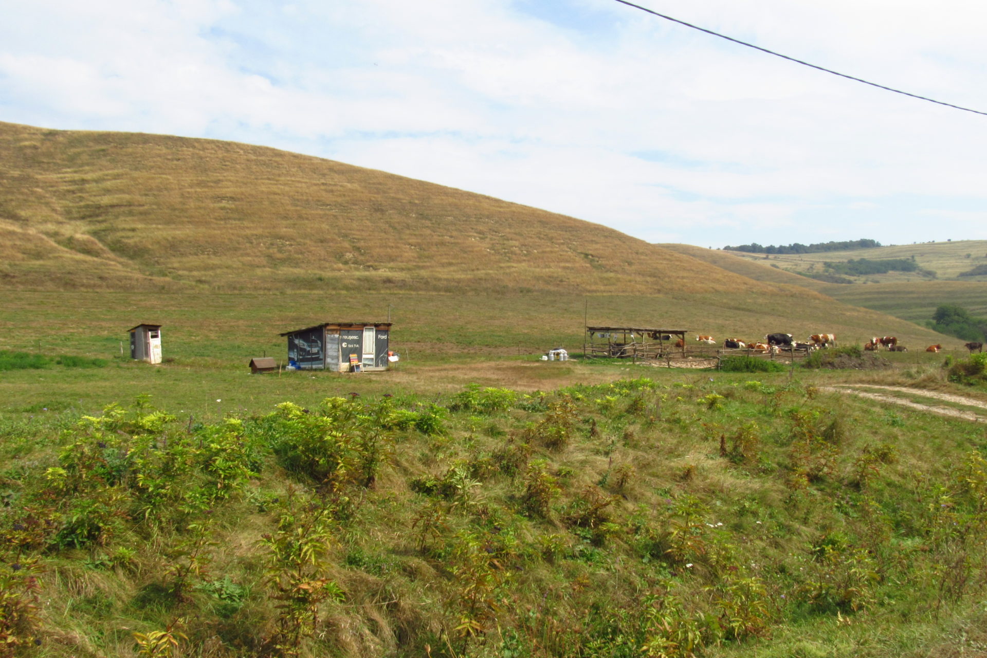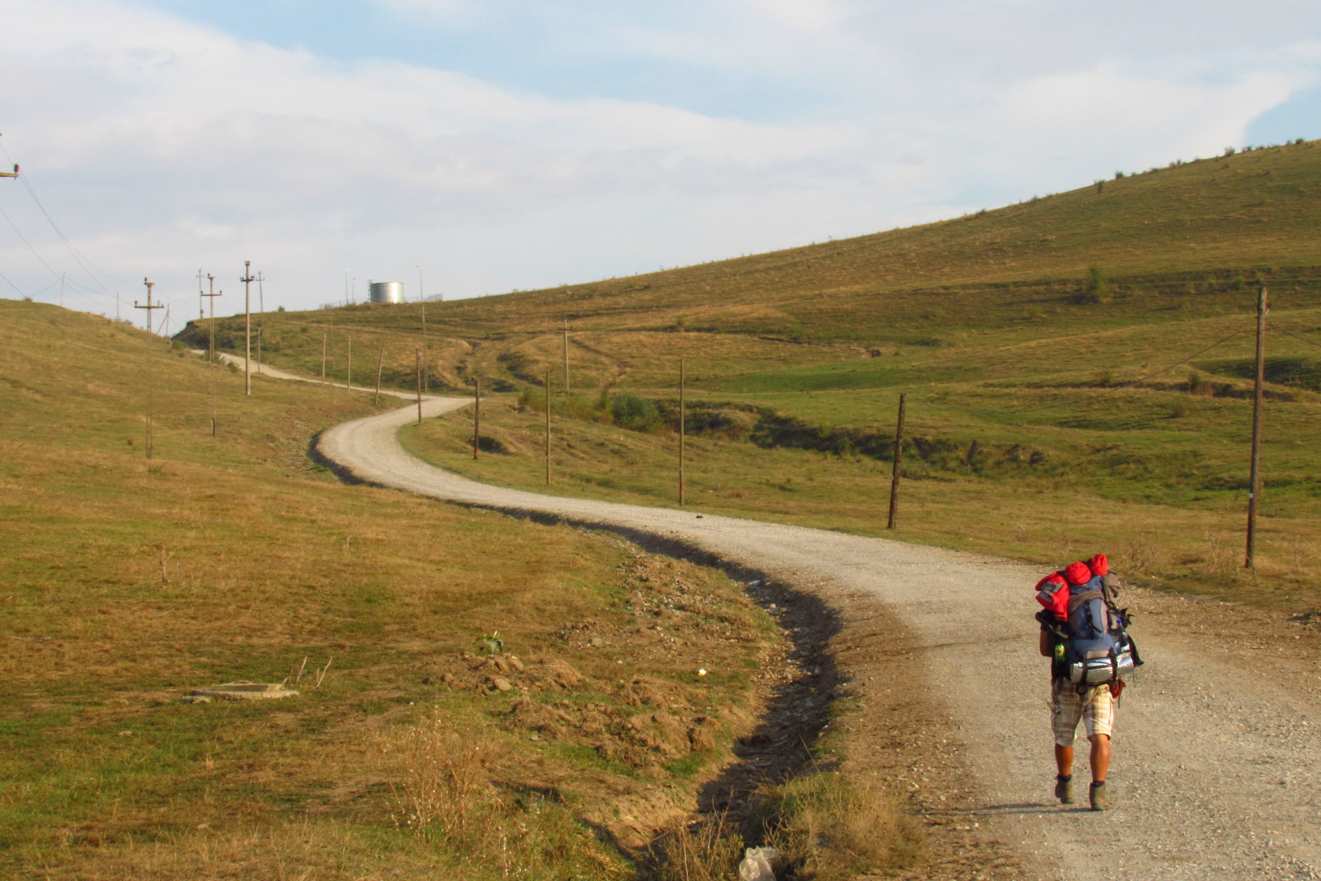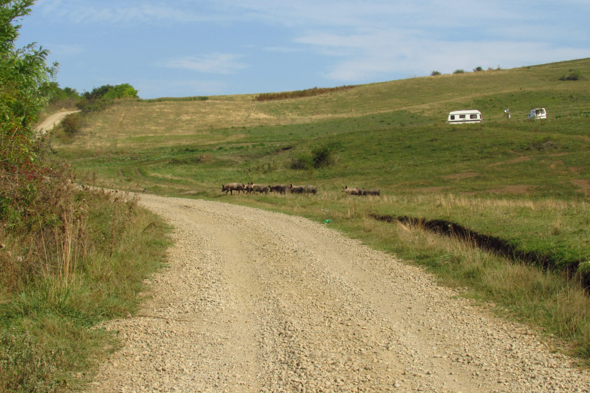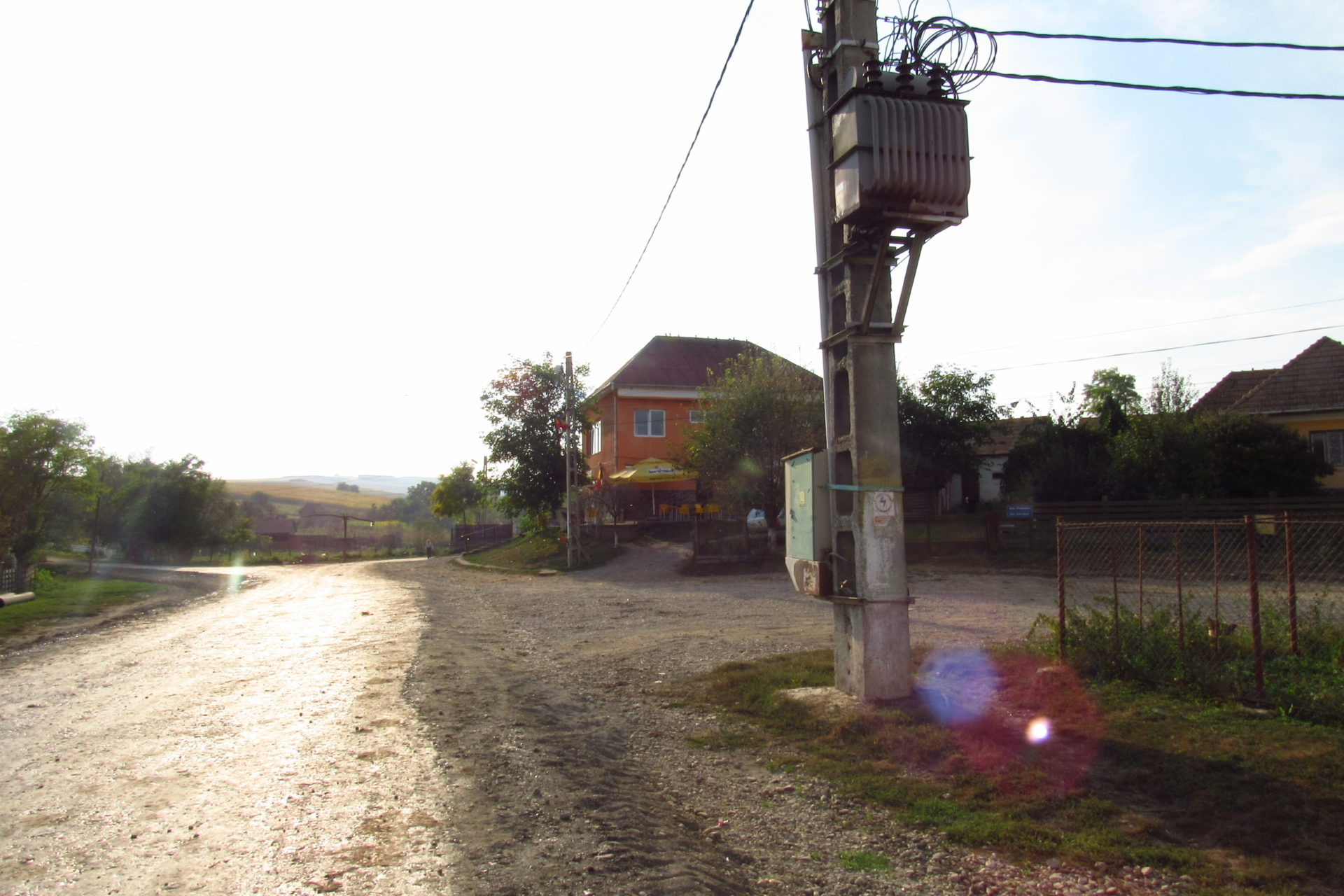 Elindulás után elhaladtunk egy nagy tó mellett, aminél sokan horgásztak. Majd jött az első nagy emelkedő. Volt némi remény, hogy utána lesz egy falu, és fogunk tudni kicsit inni és pihenni. Volt ugyan falu (Berchieşu / Berkenyes), de csak a széle, és nem volt bár. Így, hát továbbmentünk. Le a hegyről. Majd fel egy másikra. Itt találkoztunk cigányokkal, akik csipkét vagy borókát szedtek, meg disznókkal, meg kutyával, meg nyájjal. Elhaladtunk mellettük, majd le a hegyről. Itt végre megláttunk egy falut. Nagyon jó hangulatú kis falu volt. Vişinelu, azaz Csehtelke a neve. Találkoztunk egy bácsival, aki kicsit beszélt magyarul. Nem igazán hitte el, hogy honnan és hova megyünk. Édes volt, mert azt hitte, azért nem érti, mert nem egészen ért magyarul. Mondtam neki, hogy jól érti. Kérdeztem, hol van egy kocsma. Erre felcsillant a szeme, és mondta, hogy telefonon lehet hívni. Először nem értettem, de gyorsan rájöttem, hogy itt nem használják a kocsma kifejezést, és ő kocsit értett rajta, és hogy taxit akarunk hívni. Mondtam, hogy sörről van szó. Erre csak rázta a fejét, kacagott és mondta, hogy az van itt. Meg is találtuk a bárt. Ittunk is egy sört. A pasi, aki itt volt, és egyébként román, nagyon akart nekünk segíteni. Hívott egy számot, és megadta a polgármester (később kiderült, hogy csak alpolgármester) nevét, aki magyar Sármáson, ahova tartottunk. Nem tudta elérni. Mint később kiderült, ez nem is volt akkora baj. Hívtuk mi is a református lelkészt, aki meg volt adva a Mária út kapcsán, de mi se értük el őt se. Így úgy döntöttünk, majd a helyszínen lesz, ami lesz. Újabb hegy jött, és nem is akármekkora! De megmásztuk. És onnan a hegytetőről már látszott egy falu, ahova először be fogunk érni, és a távolban már Nagysármás is. Le kellett jönni a hegyről, hogy beérjünk a faluba. Utunk egy jó nagy szeméttelep mellett vezetett. Időközben már átléptük Maros megye határát valahol. Rá kellett térnünk egy főútra, de szerencsére itt nem jár annyi autó.