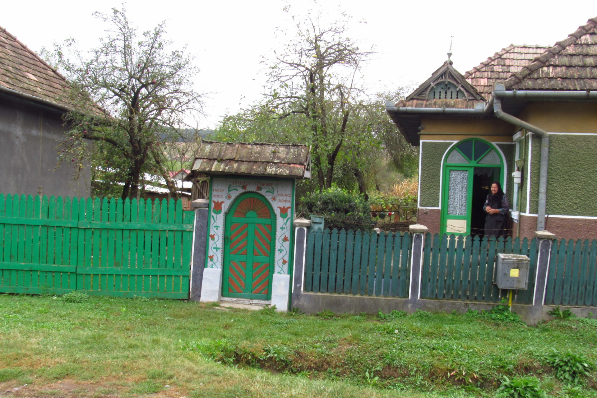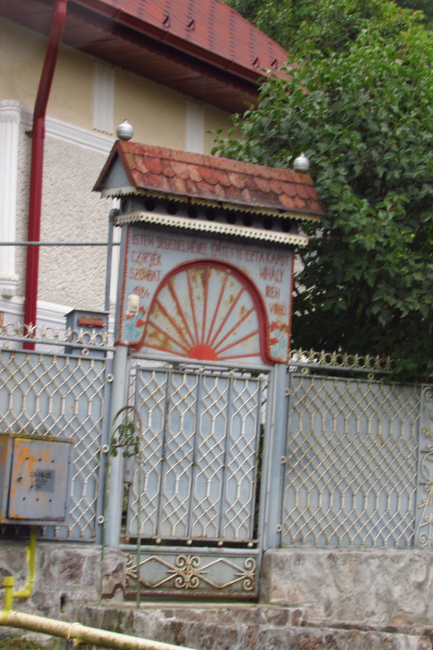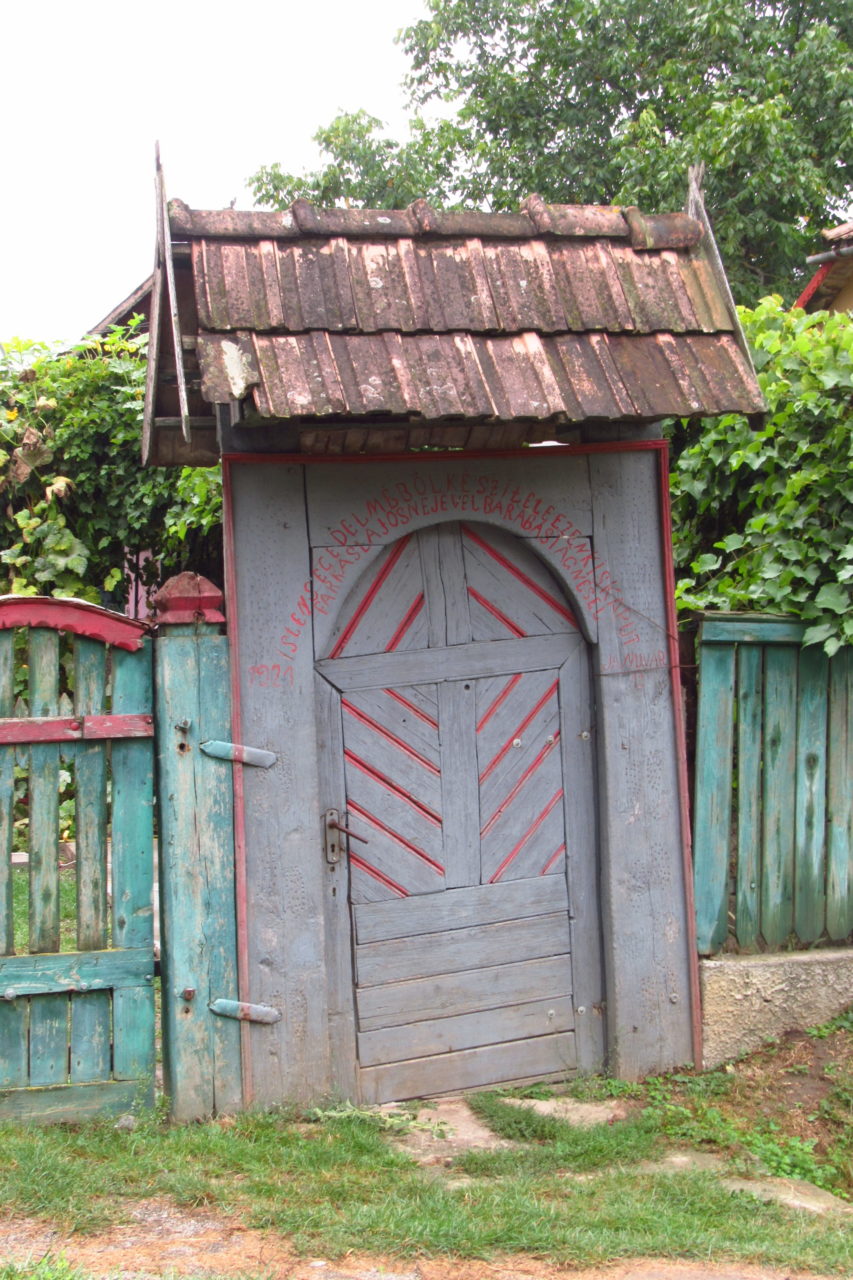 Tehát kicsit szitáló esőben indultunk neki Marosvásárhelynek. A faluból kivezető út maga volt nekem a csoda megint. Itt most a kis székelykapuk nyűgöztek le. Álomszépek. Itt még nem olyan nagyokat építenek, mint ahogy emlékszem Csíkban meg beljebb, hanem kicsiket. Csak a bejárat. Szépek a feliratok, de a mintázat is. Persze jó lassan haladtunk, mert ebben az utcácskában szinte mindegyik portához ilyenen át lehet bejutni. És én fotóztam is őket.