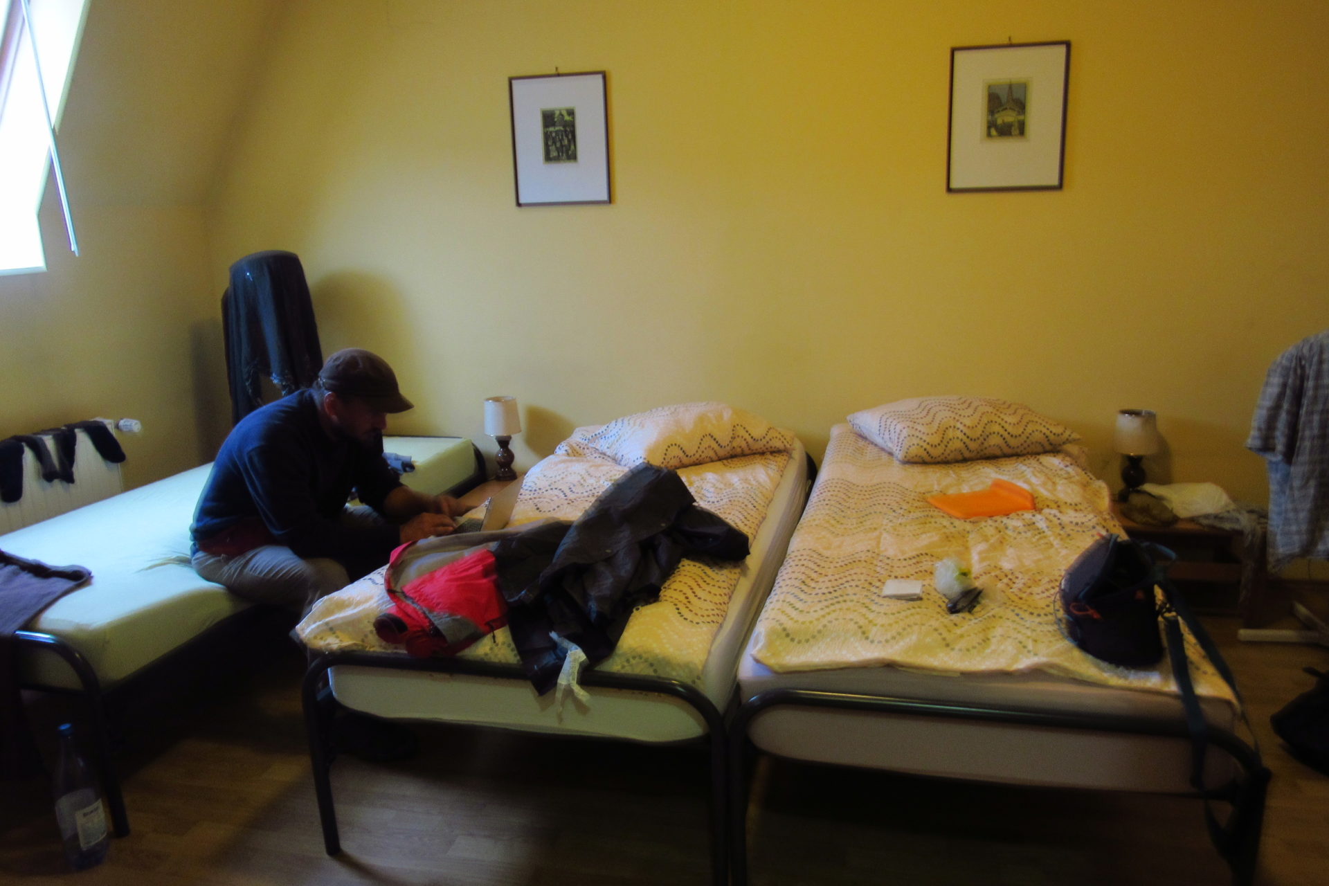 Innen még elég messze volt a központ, de végre beértünk. Itt találtunk egy kis kocsmát, és végre le is tudtunk ülni. Én ittam egy sört, Gergő valami pálesz félét. Volt itt internet is. Gergő talált is egy szálláslehetőséget. Egyébként betértünk még előbb megnézni az árakat egy panzióba. Elég elképesztő volt. Amit Gergő talált, az ismét a református egyház által üzemeltetett panzió. Ő elment megnézni, hogy milyen, én pedig ott ücsörögtem a kocsmában. Beszéltem kicsit az otthoniakkal, mert már izgultak (kaptam jó néhány sms-t és emailt), hogy mi a helyzet velünk. (Hetente egyszer egy előre megbeszélt napon hívok mindenkit, vagy ők hívnak, de most ugye pont ezen a napon nem volt térerő.) Jó volt ott ücsörögni és nézni az embereket. Ide inkább helyi cigányok járnak. Ugyanaz a kocsmai élet zajlik, mint otthon. A témák is hasonlóak. Szeretem, ahogy beszélnek. Itt még izgibb a dolog, mert keveredik a magyar, a székely, a román és a cigány nyelv.