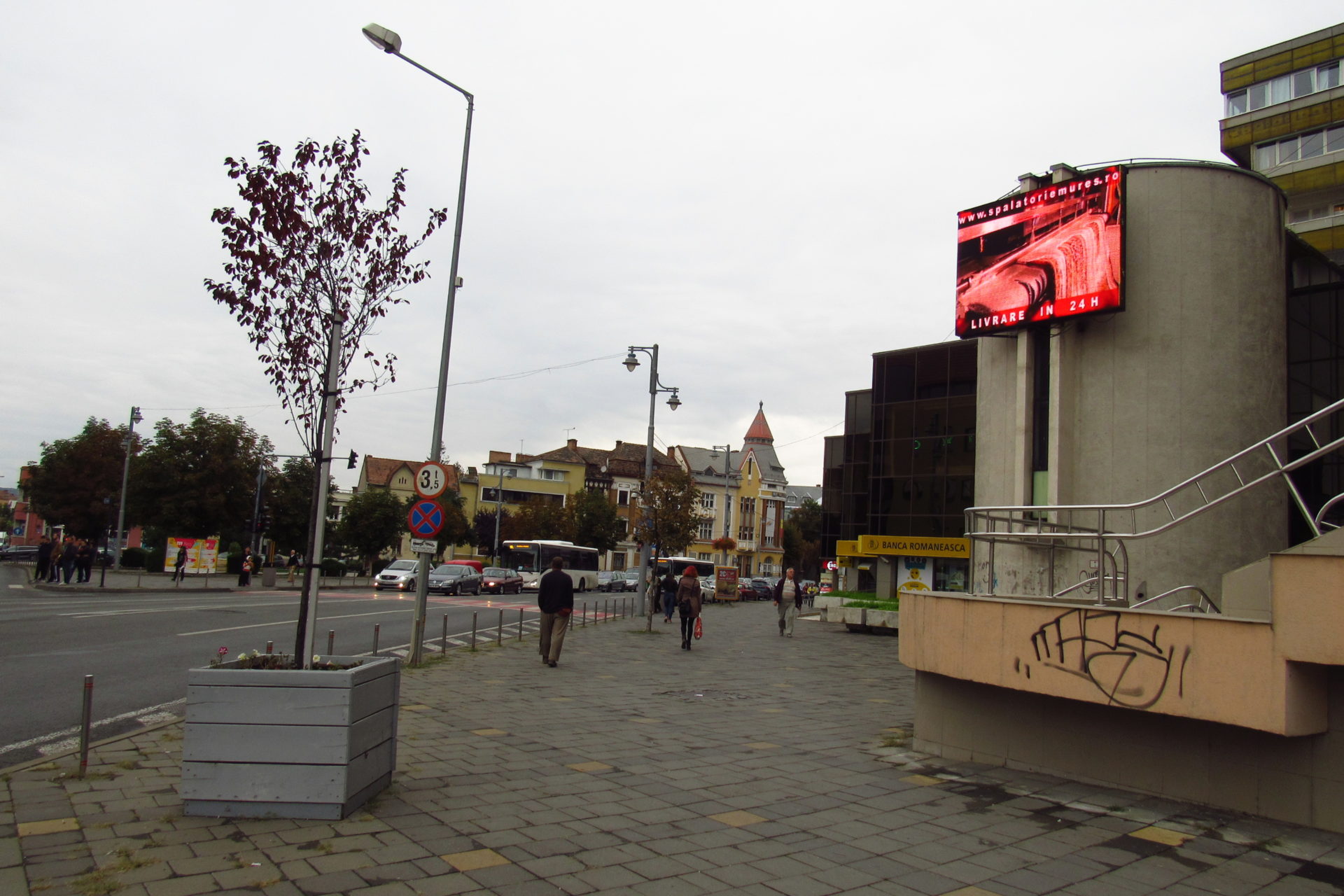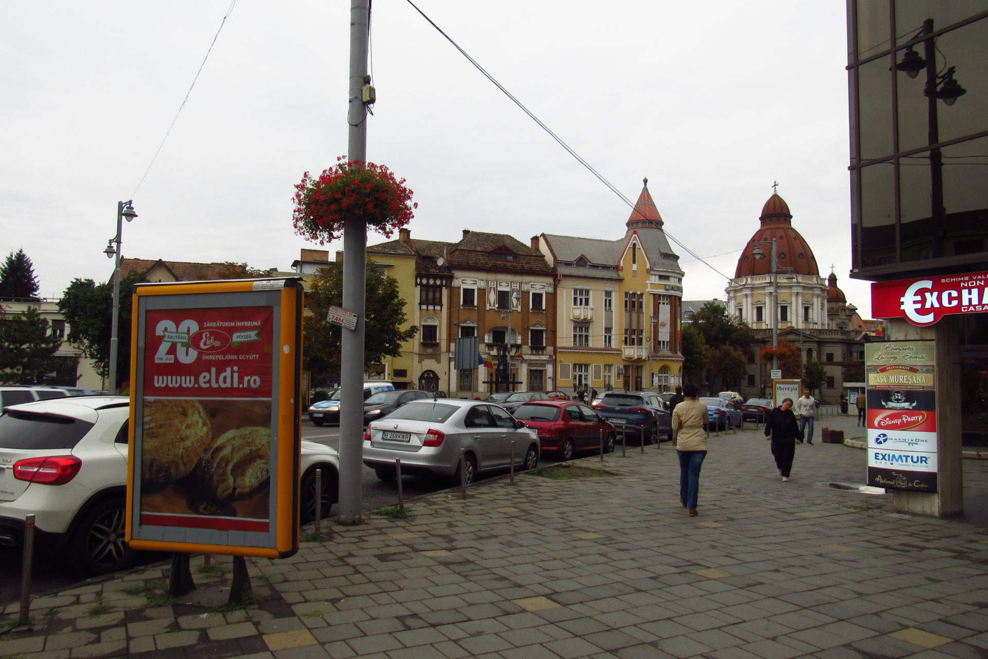 Érdekes volt számomra ennek a városnak a kettőssége. Egyrészt ez az előbb említett román magyar nyelvi kettősség, ami, ha őszinték akarunk lenni néha hármasság, az angol feliratokkal együtt. Sőt még az utcán jelen van a cigány nyelv is. Másrészt a modern, illetve a 60-70-80-as évek építészetének és a szecessziónak ez a találkozása. Persze ez az építészeti sokszínűség mindenhol jelen van a városokban úgy itt, mint nálunk otthon. De valahogy – lehet, sőt nagyon valószínű, hogy ennek az utóbbi időszaknak a hatásától – ez most nagyon élesnek tűnt.