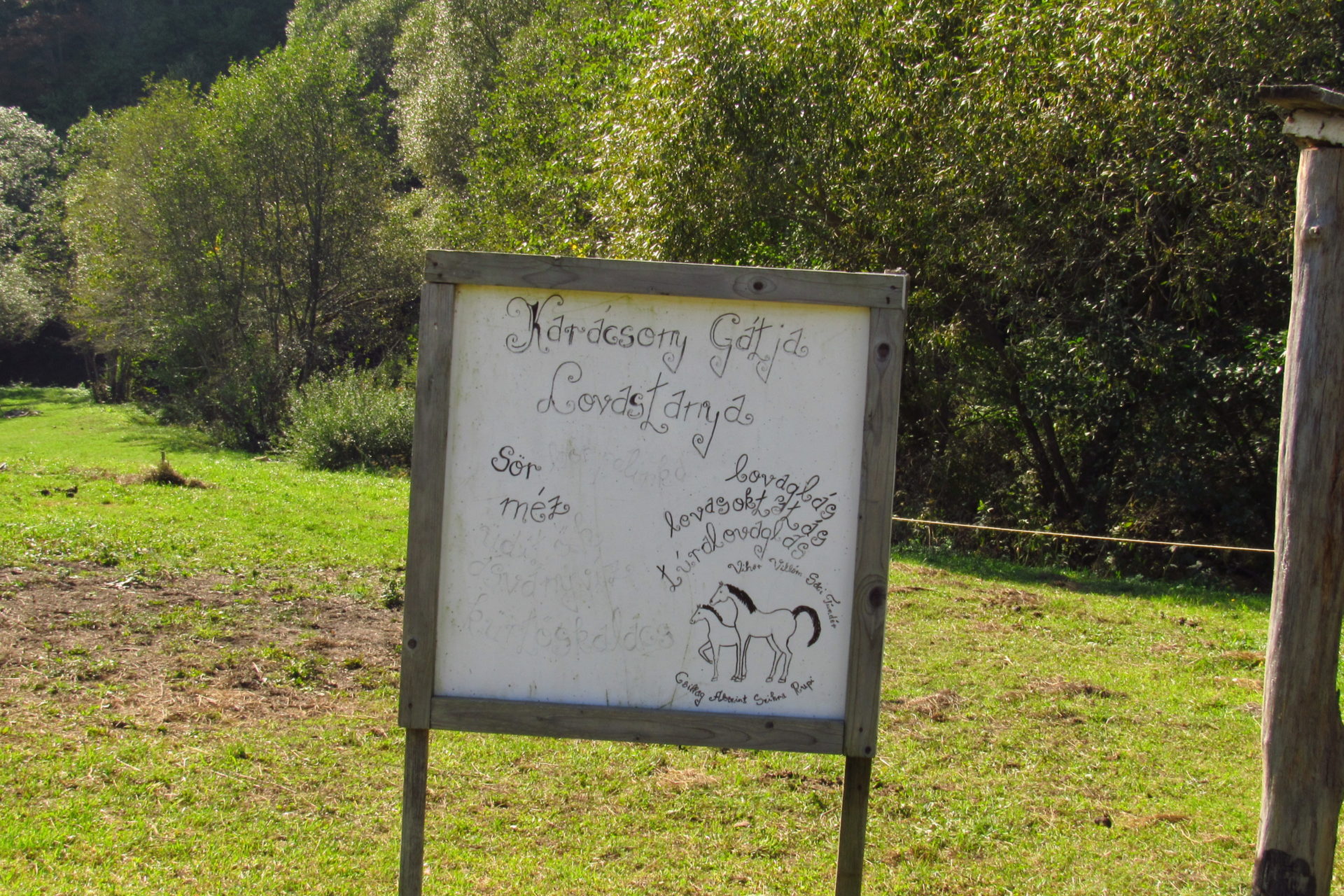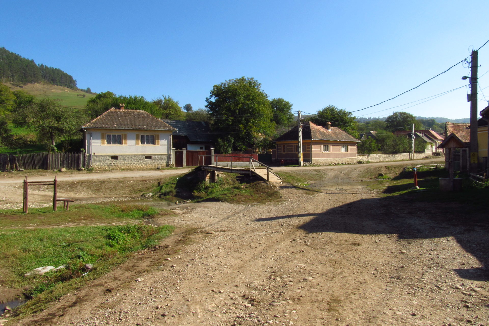 Amit kihagytam, hogy mielőtt kiértünk volna a faluból, találkoztunk egy idősebb és egy fiatalabb férfival. Megállítottak minket, és beszélgetésbe elegyedtünk. Ez nem újdonság ugyebár, de azért írom le, mert megerősítette ismét, amiről előző nap és már oly sokszor írtam, és amit itt nagyon lehet érezni, és már másokkal is szóba került. A bácsi többször rákérdezett, hogy jó-jó, hogy gyalog, de mit “gyütünk”. Nagyon nehezen értette meg, hogy nem “gyütünk” semmit. Többször visszakérdezett, hogy esetleg régi dolgokat, burjánt (gyógynövény), fotózom-e a régiségeket, történeteket, hogy aztán otthon kapjunk érte valamit, vagy írjunk róla és majd azért fognak fizetni. Azt mondja, azért szoktak jönni. Ha gyalog, akkor biztos burjánt gyűjtünk, mert olyanok szoktak jönni, és az van itt sok. A végén csak elhitte, hogy nem akarunk vinni innen semmit, csak szeretünk itt lenni és beszélgetni. Ha meg is írok ebből valamit, azt nem azért, hogy haszon legyen belőle. Akkor aztán még furcsábbnak tartotta az egészet, de Isten segedelmére bízva minket utat mutatott, és jó részletesen elmondta, hogy merre is kell majd haladni. A lényeg az volt, hogy előre, és majd jó sokára, amikor lesz egy háromakkora víz, mint ez itt, akkor azon lesz egy híd is. Ott kell majd jobbra tartani. Nekem ez a háromakkora annyira tetszik. Gergő kicsit még mindig nehezen érti őket, főleg, ha gyorsan beszélnek. De bevezettük, hogy ha valamit nem ért, akkor a végén elmondom. Néha én is elakadok, mert van egy-két öreg, aki nagyon zártan és gyorsan beszél. És persze, ha ittak is valamit, akkor ez fokozódik. De jól boldogulunk, és ha nem, röhögünk és visszakérdezünk. Új barátainkkal Gyepesen jó sokat beszéltünk erről is, és jó sokat húzták Gergőt is, aki ezt nagyon élvezi. Mi is viccet csinálunk belőle.