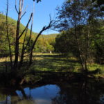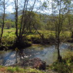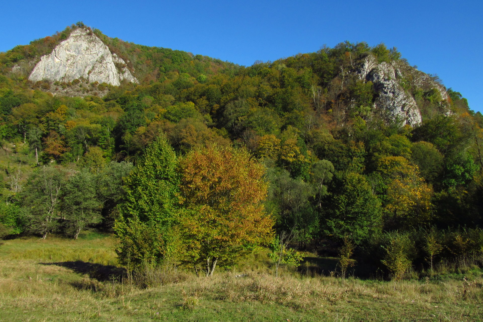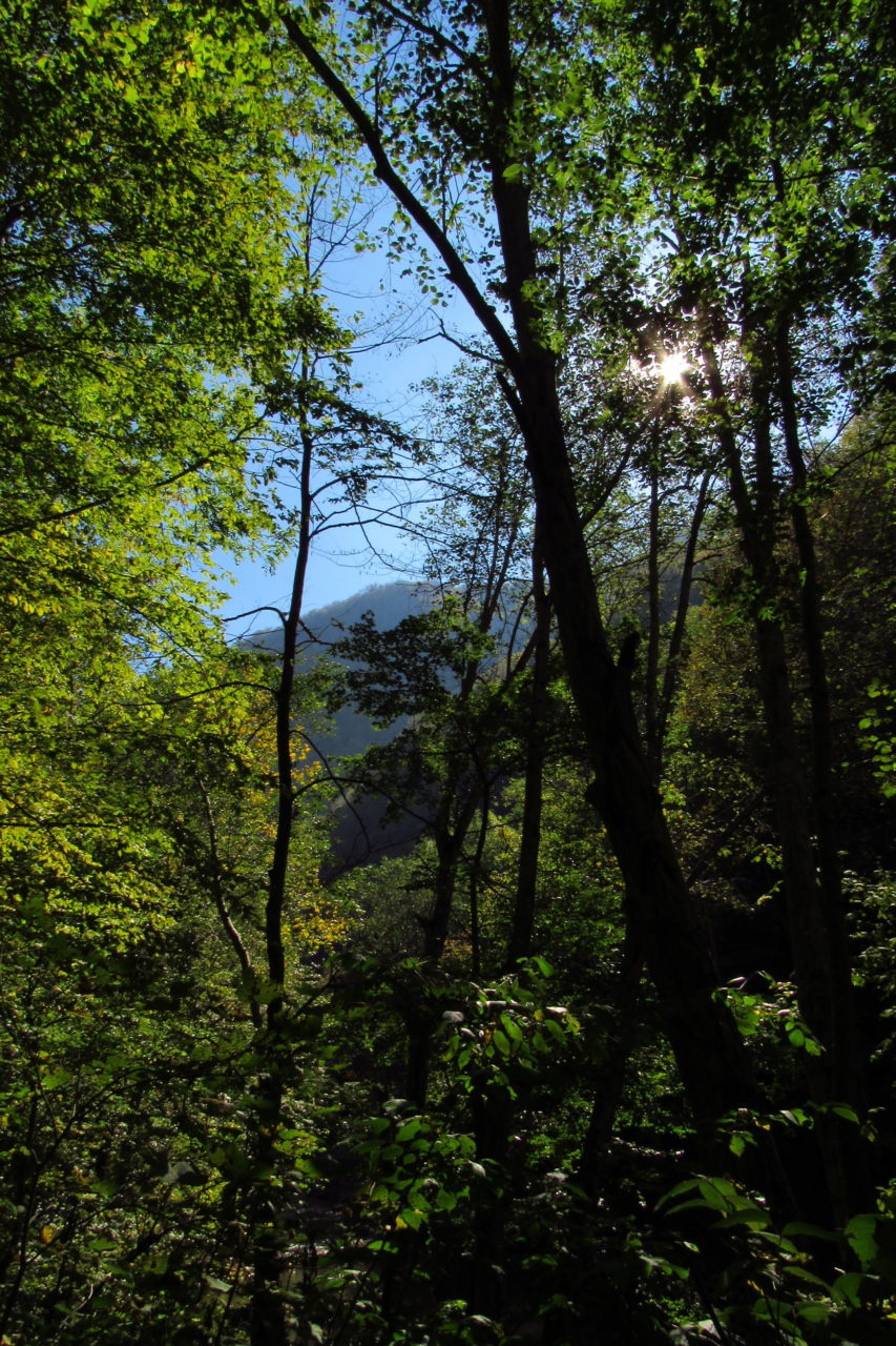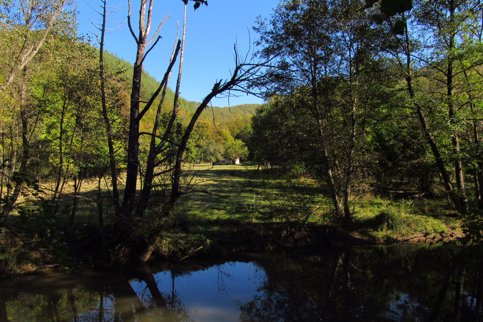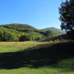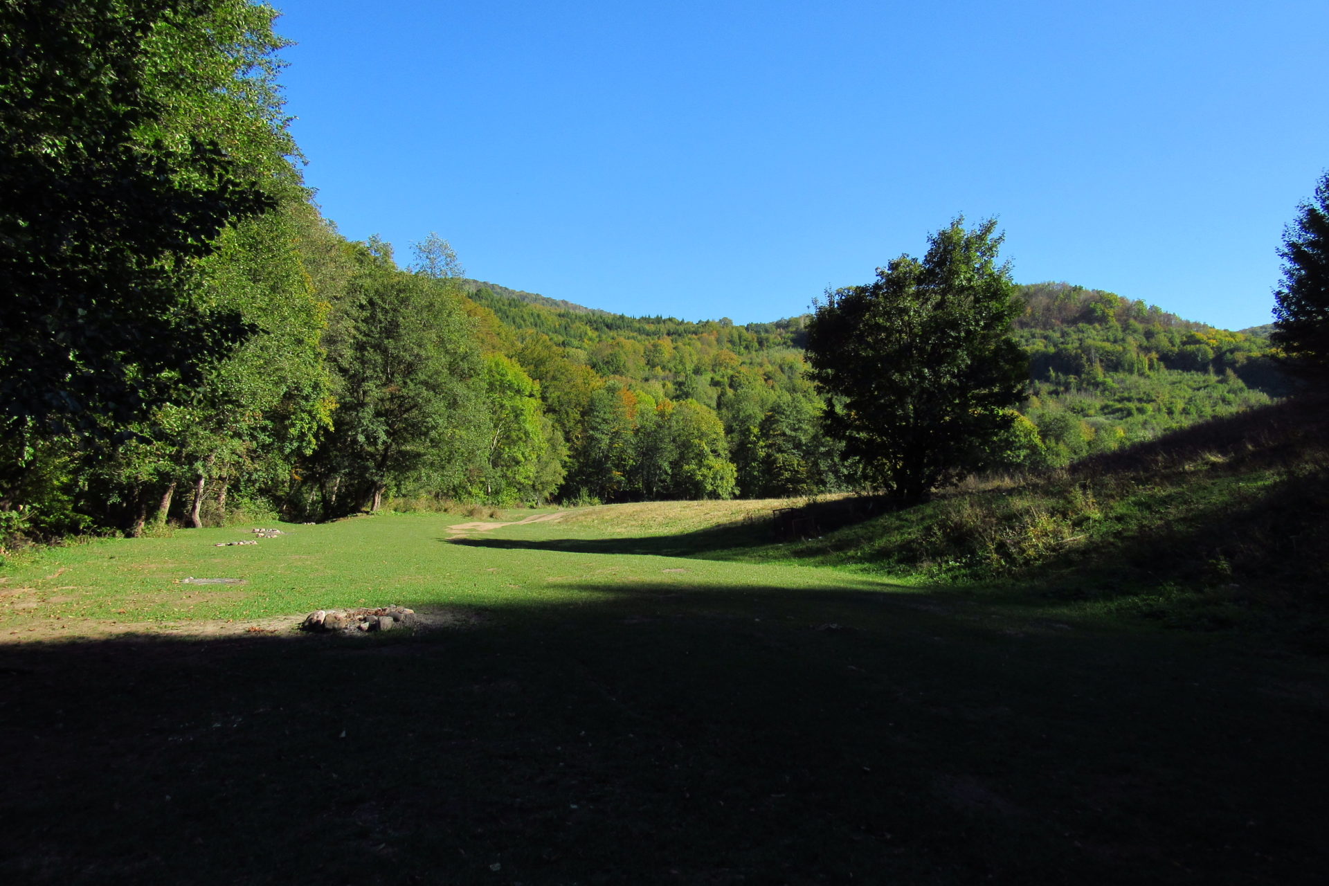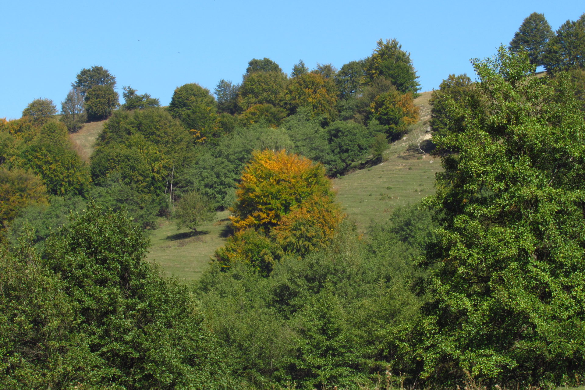Hát ez a varázslatosság és egy igazi kalandtúra napja volt. (Eszembe is jutott ippi barátunk, aki ugye túlélő túrázóknak nézett minket. Hát ha most látott volna minket…. nem is tévedett olyan sokat! 🙂 ) Meg is beszéltük Gergővel, hogy ez a tényleg leírhatatlan kategória, mármint, ami a csodát illeti. Éreztük ezt már, ahogy kisétáltunk Almásról azonnal. De már a falu végén is. Az út, ami kivezet, egy csodálatos rétekkel, legelőkkel, erdőkkel tarkított, először kisebb, majd nagyobb dombra visz fel. Innen belátni az egész falut és a szemben lévő hegyet, melyen az az út kanyarog, amin előző nap beértünk a faluba. És ezt követi a valódi varázslat első fele. Álomszép kanyargós út a hegyek között, és azon át. Patak csörgedezik végig az út mentén, legelők, nyájak és gulyák itt is, ott is, kolompok és bácsok hangja, hatalmas ragadozó madarak (ölyv vagy sasok) szállnak felettünk, őszülő erdő, kék ég, napsütés. Nem lehet leírni, csak megélni. Egyébként megdöbbentően meleg lett. Ujjatlan pólóban és feltűrt nadrágban voltam végig ezen a szakaszon.