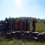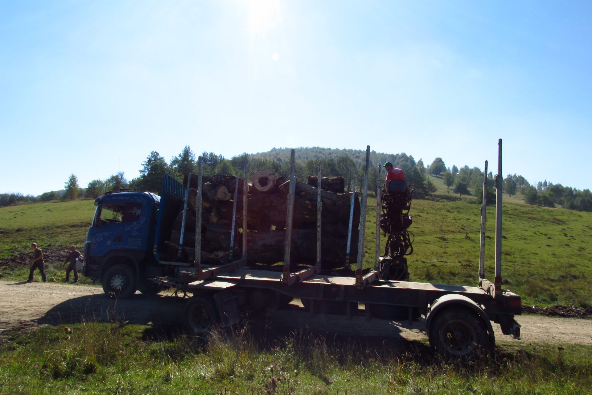 Szóval, haladtunk ezen a varázslatos tájon, és közben Gergő mondta, hogy egy kicsit az az érzése van, hogy ez egy búcsúzás is. Búcsúzás a nagy hegyektől, az erdőktől, Erdélytől. És szép búcsú. Én mondtam neki, hogy azért még itt vagyunk, és még van egy pár nap, mire oda érünk, azt ne a búcsúval töltsük. De megértem. Neki valószínűleg ahhoz, hogy ne legyen túl hirtelen a váltás, hosszabb idő kell, hogy megélje ezt. Bennem is van egy ilyen érzés, de nem akarom átadni magam ennek. Kicsit kibeszéltük ezt magunkból, és ez nagyon jó volt. Egyébként, ami még érdekes volt itt, hogy ezen az úton jó sok traktor jár. Fát visznek, gondolom ez már a tél előkészítése. De volt fenn a hegytetőn egy hatalmas fákat szállító teherautó is.