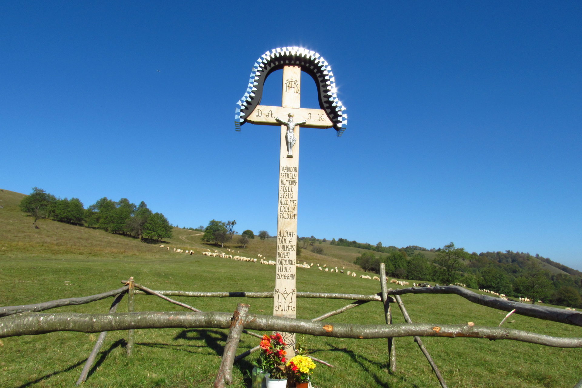 Felértünk a hegy tetejére, és persze elájultunk! Nincs mit írni erről már megint! Nem tudom, hogy a képeken mi fog átjönni, de az élmény felülírhatatlan volt.  Van fent egy kereszt is, amit idén állítottak.