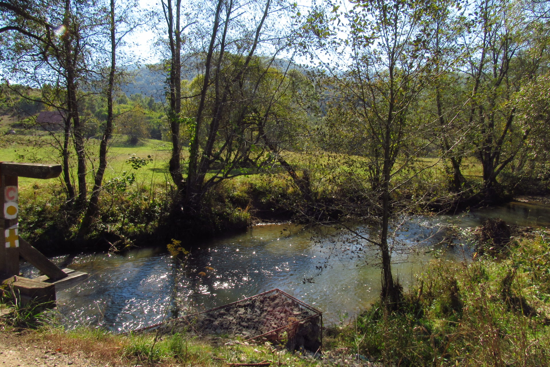 Innen lefelé vezet az út a Vargyasi szurdokhoz. Kicsit itt még aggódtunk, hogy nehogy olyan turistalátványossághoz érjünk, mint amilyen a Gyilkos-tó, vagy a Szent Anna-tó, vagy a Békás-szoros lett, vagy valami olyasmi, mint amit Kőrispatakon éltünk meg. Jött egy magyarországi autó is, meg még több autó, így kicsit tényleg izgultunk. Szerencsére kár volt. Szintén álomszép út visz le a szurdok bejáratához. Itt van az a bizonyos háromakkora víz és a híd. Egy csodálatos rétre értünk itt be. Pár kis ház és eligazító táblán kívül nem volt itt semmi és senki. Meg is álltunk megpihenni és kicsit leülni mélázni. Ettünk szendvicset is, amit hoztunk. Én napoztattam kicsit az arcom, mert a takonykór eléggé eluralt. Folyt az orrom rendesen. Jó kis ücsörgés és csend után nekiindultunk a szurdoknak.