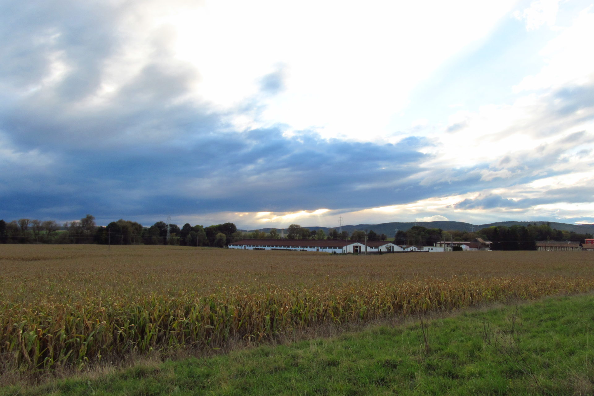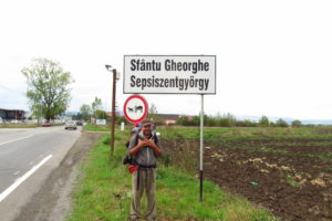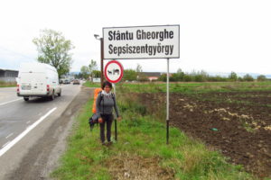 Gidófalván csak áthaladtunk, de láttunk egy-két számunkra vicces kiírást.  Ezt követően már szekérúton kellett haladnunk, ha nem akartunk a főútra kimenni. Így aztán elég nagy sárban meneteltünk előre. Krumpli- és kukoricaföldek mentén haladtunk. Nagyon szép itt is a táj. Érdekes élmény volt, hogy végig ott láttuk magunk előtt Szentgyörgyöt. És persze egyfolytában közeledtünk felé.